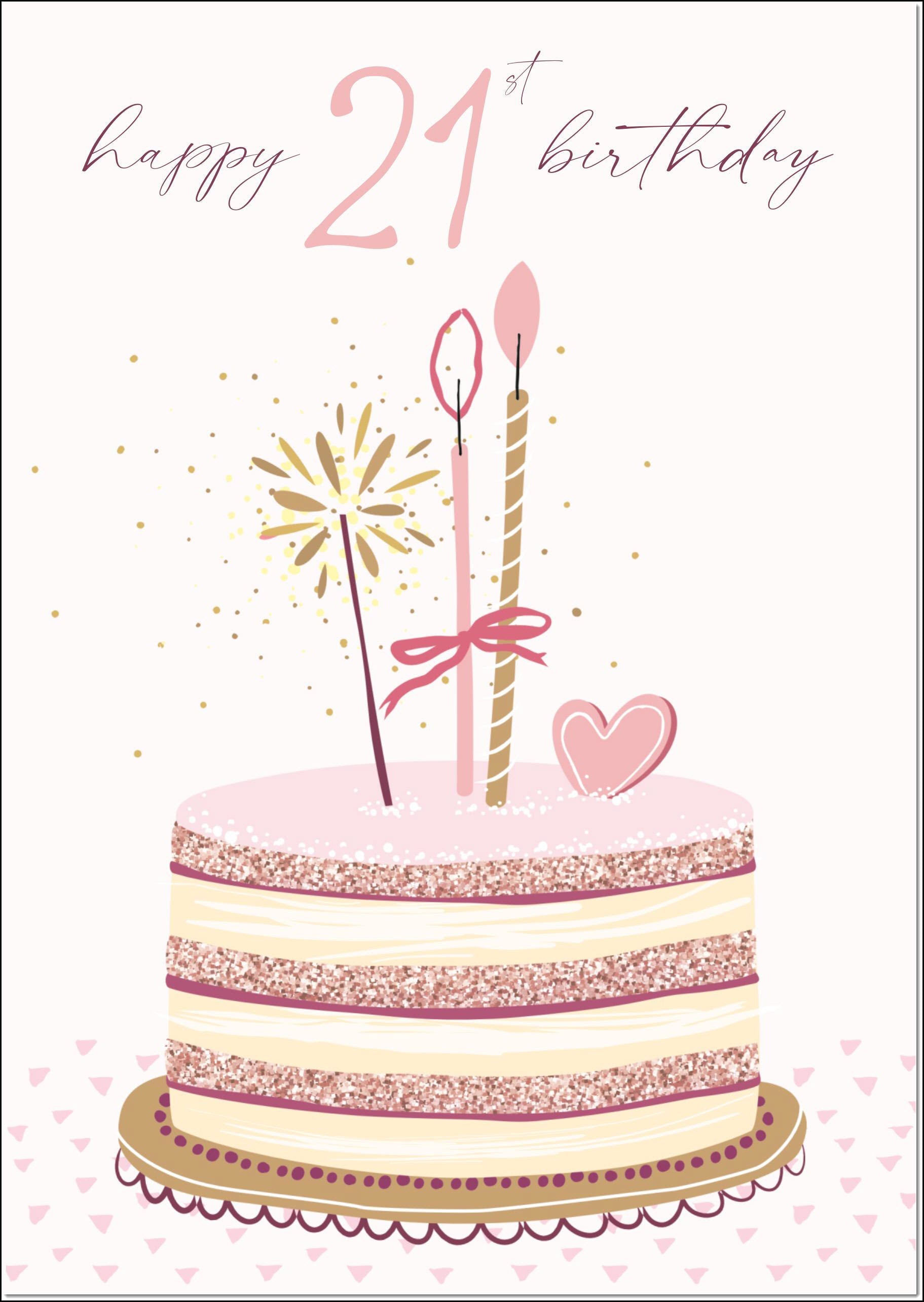 21st Birthday Card Age 21 for Her Pastel Pink Birthday Cake