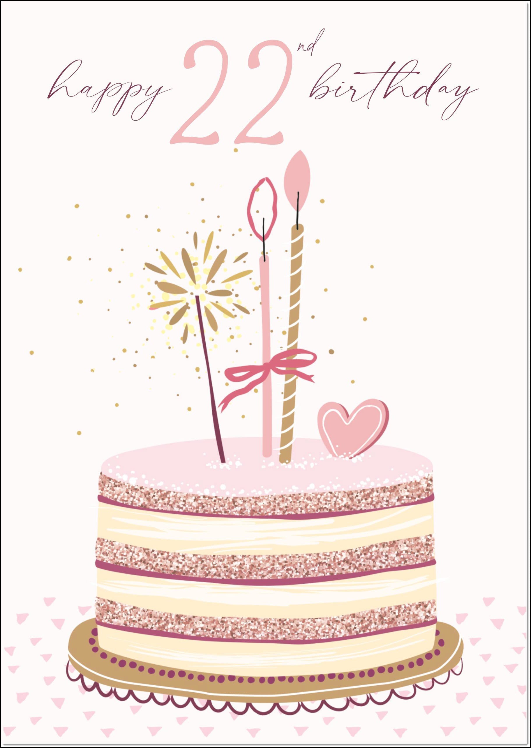 22nd Birthday Card Age 22 for Her Pastel Pink Birthday Cake