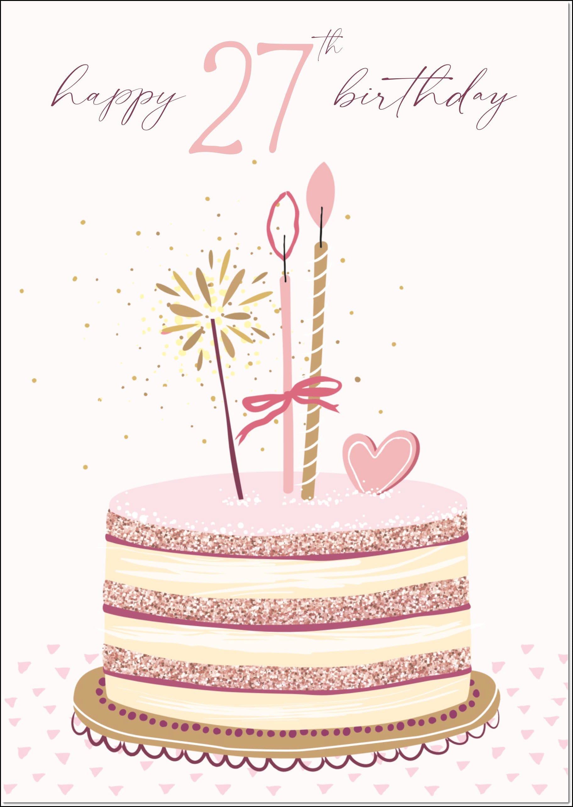 27th Birthday Card Age 27 for Her Pastel Pink Birthday Cake
