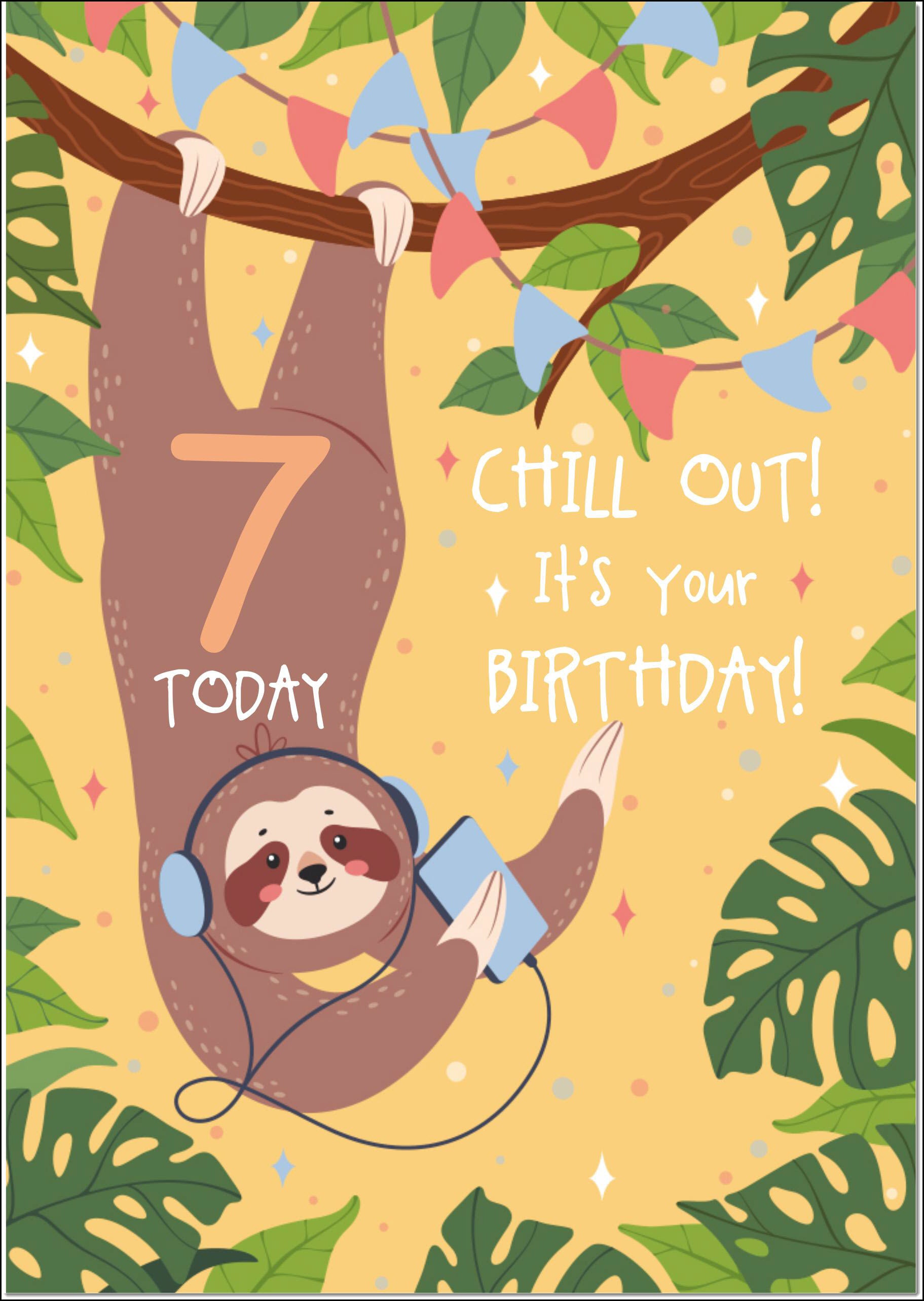 7th Birthday Card Age 7 Chilled Out Sloth