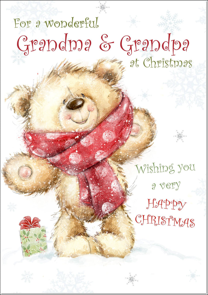 Grandma & Grandpa Christmas Card Teddy Bear With Red Scarf