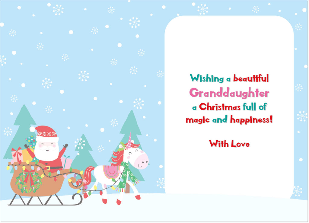 Granddaughters 1st Christmas Card Magic Santa's Sleigh With Unicorn