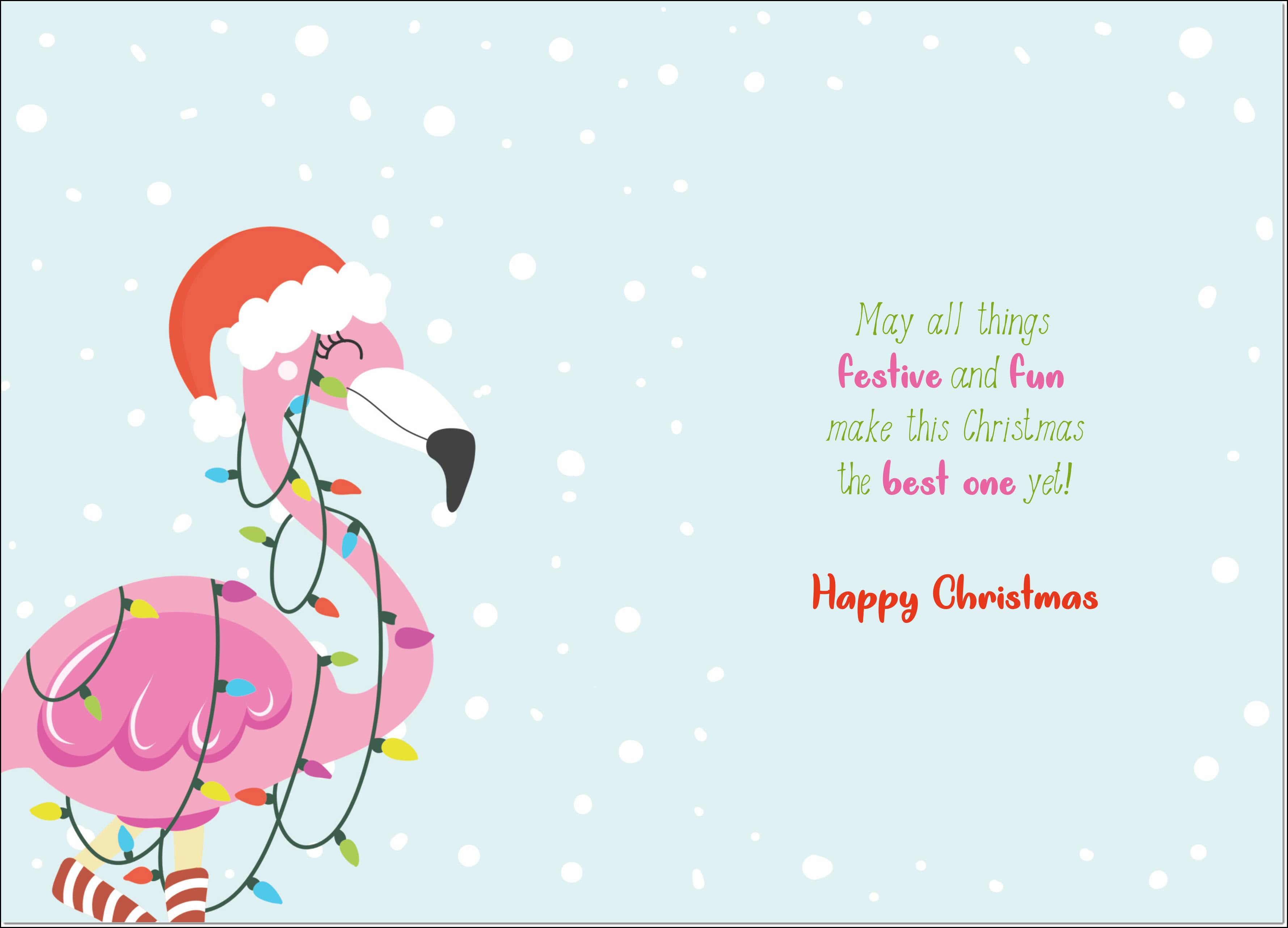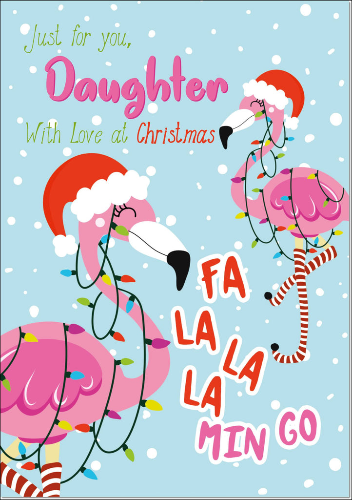 Daughter Christmas Card Flamingo Christmas Tree Lights