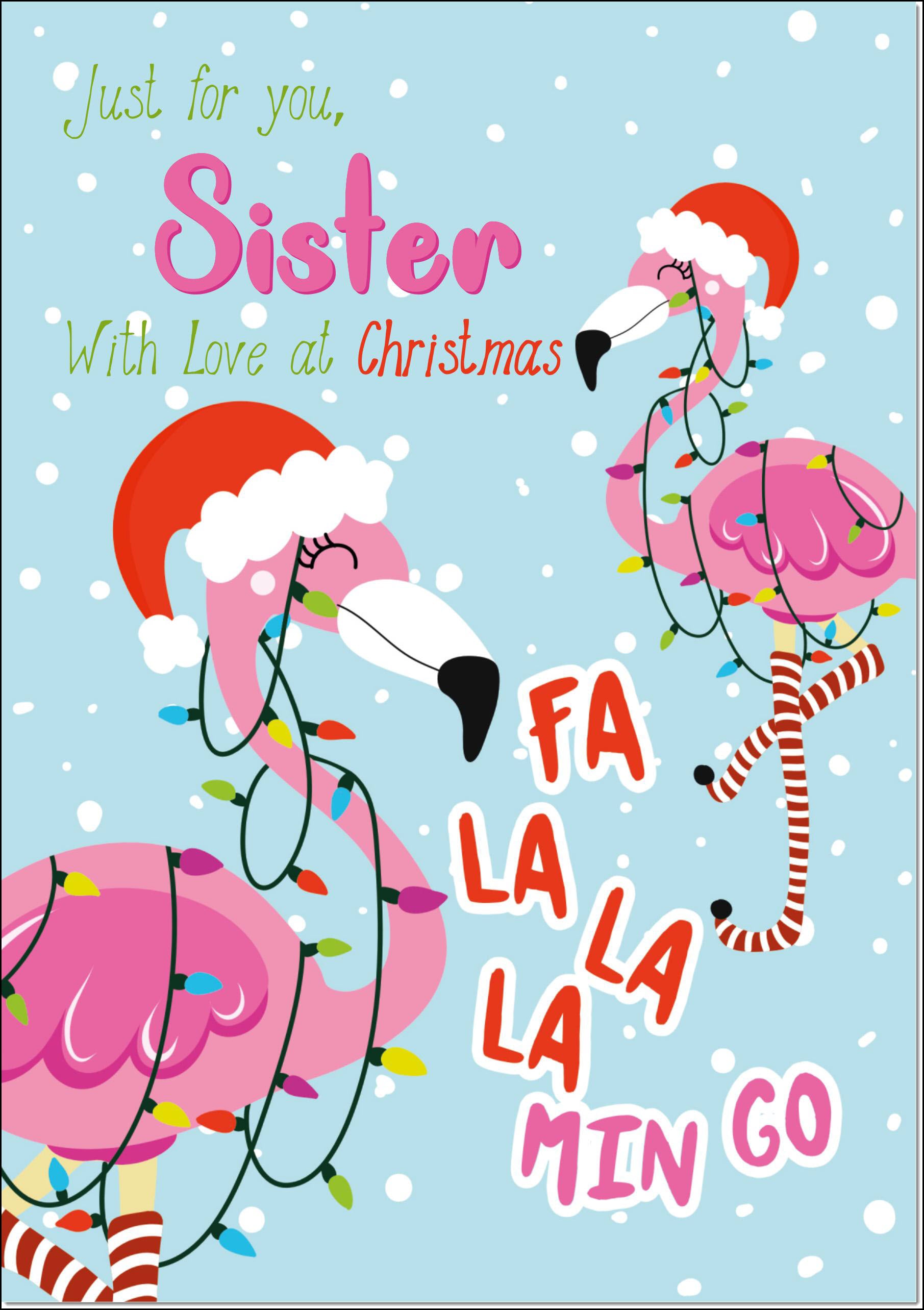 Sister Christmas Card Flamingo Christmas Tree Lights