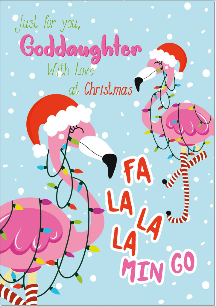 Goddaughter Christmas Card Flamingo Christmas Tree Lights