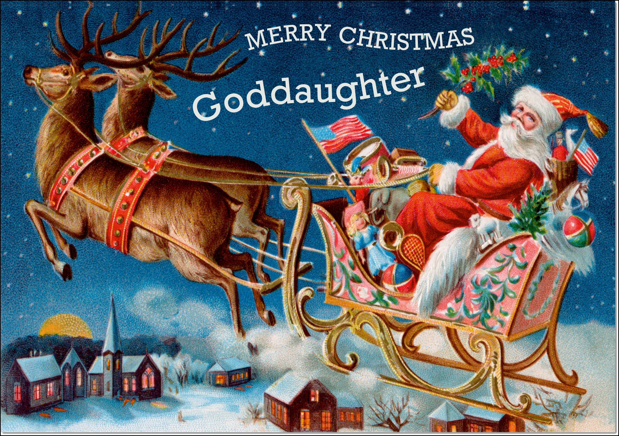 Goddaughter Christmas Card Santa's Sleigh Victorian Style