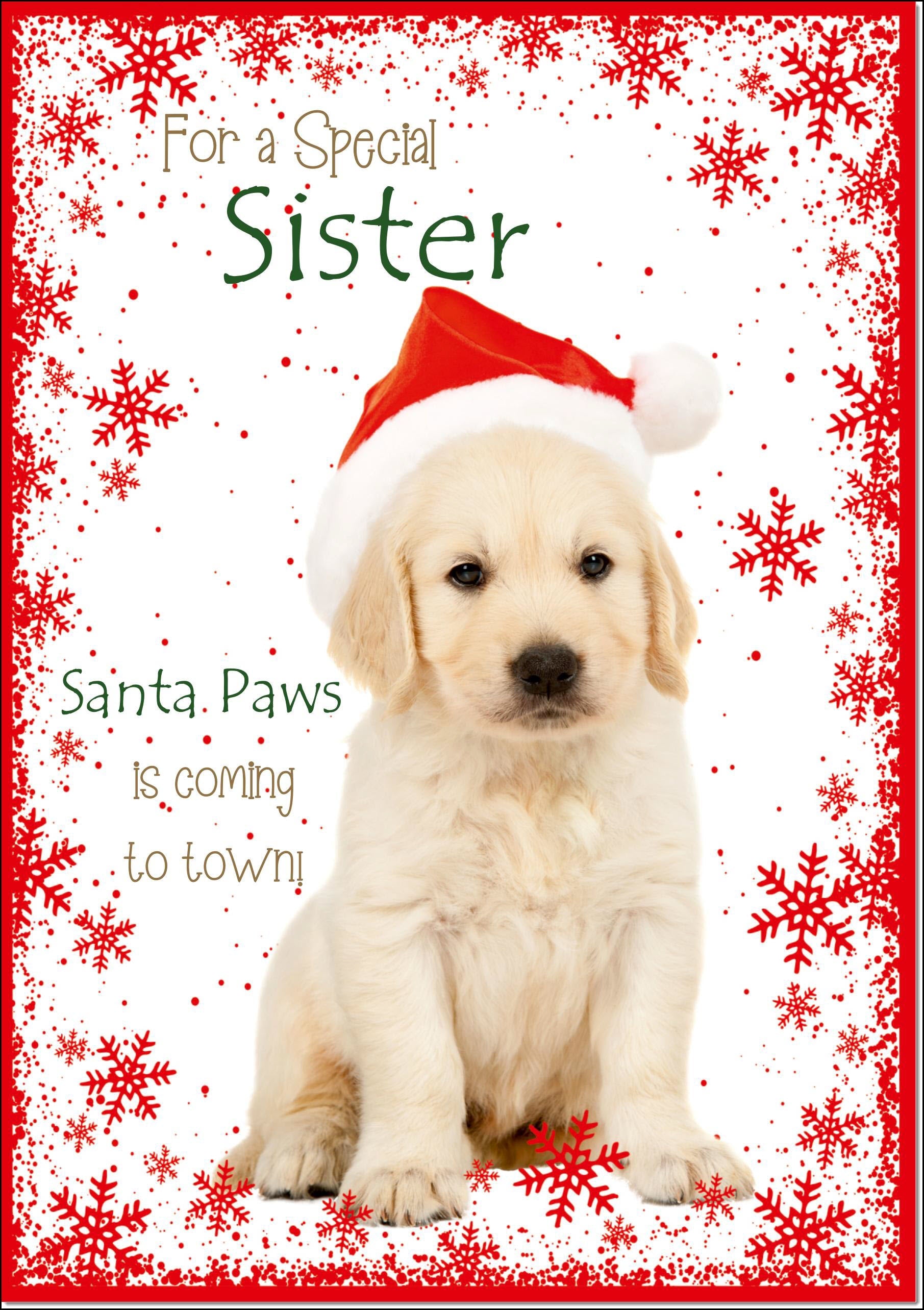 Sister Christmas Card Cute Santa Paws Puppy Dog Pet
