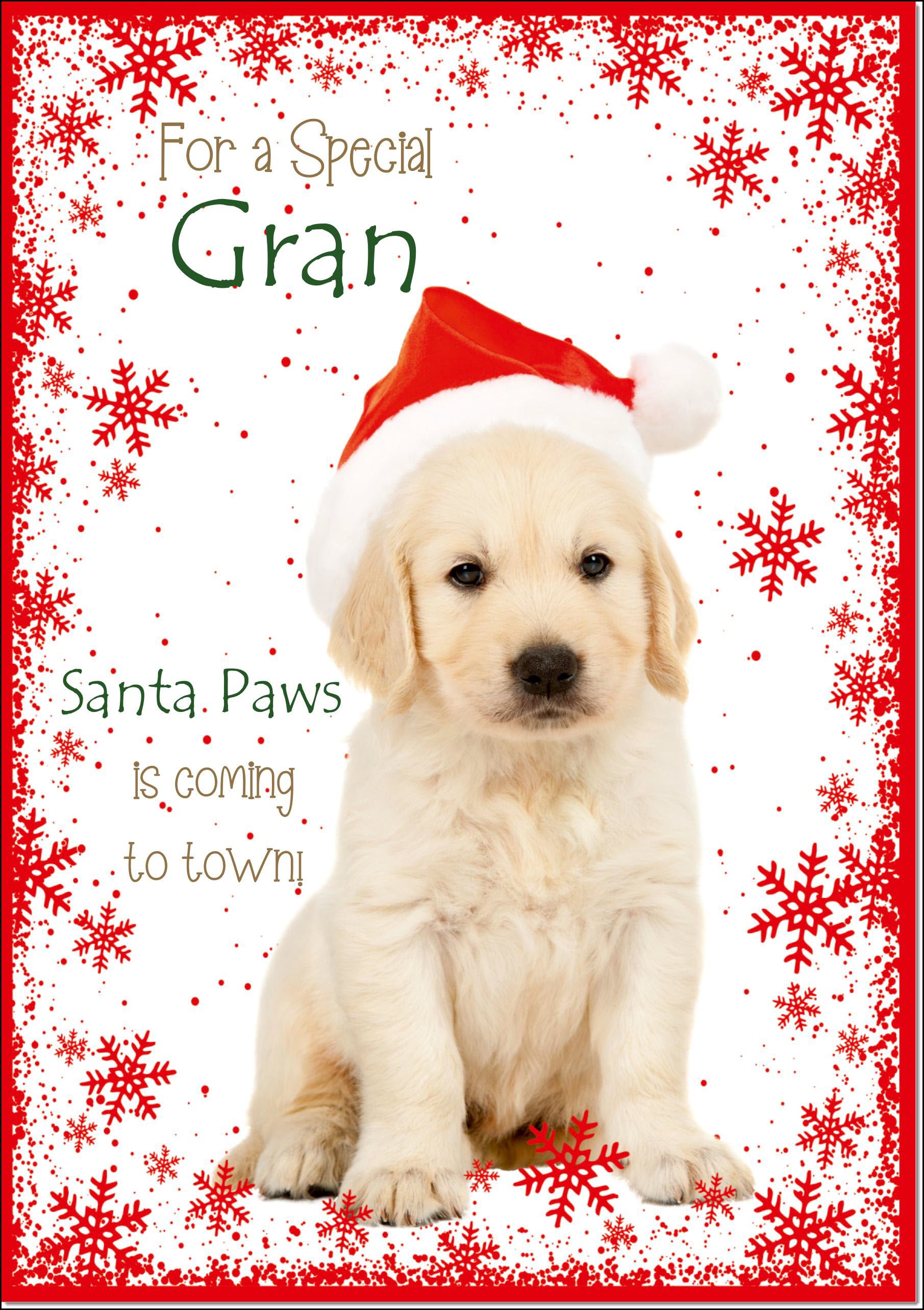 Gran Christmas Card Cute Santa Paws Puppy Dog Pet