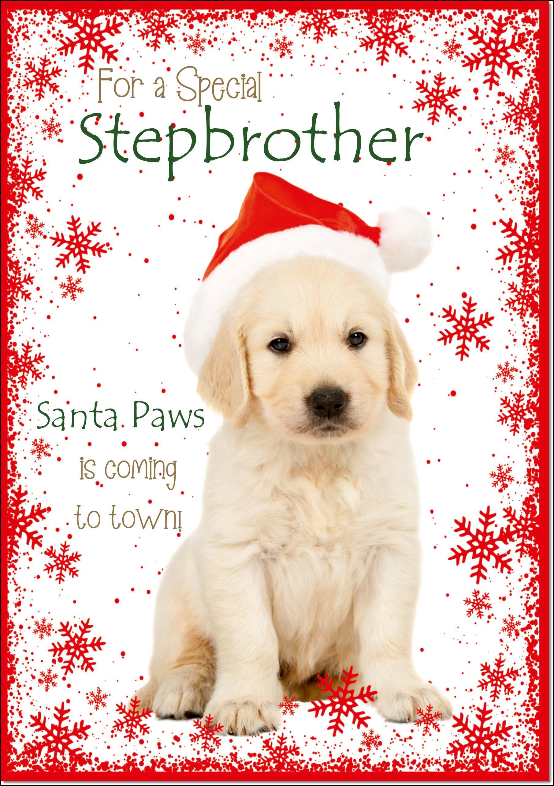 Stepbrother Christmas Card Cute Santa Paws Puppy Dog Pet
