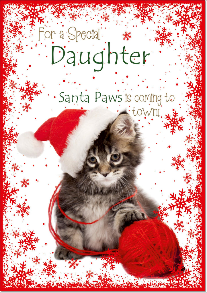 Daughter Christmas Card Cute Santa Paws Kitten Cat Pet