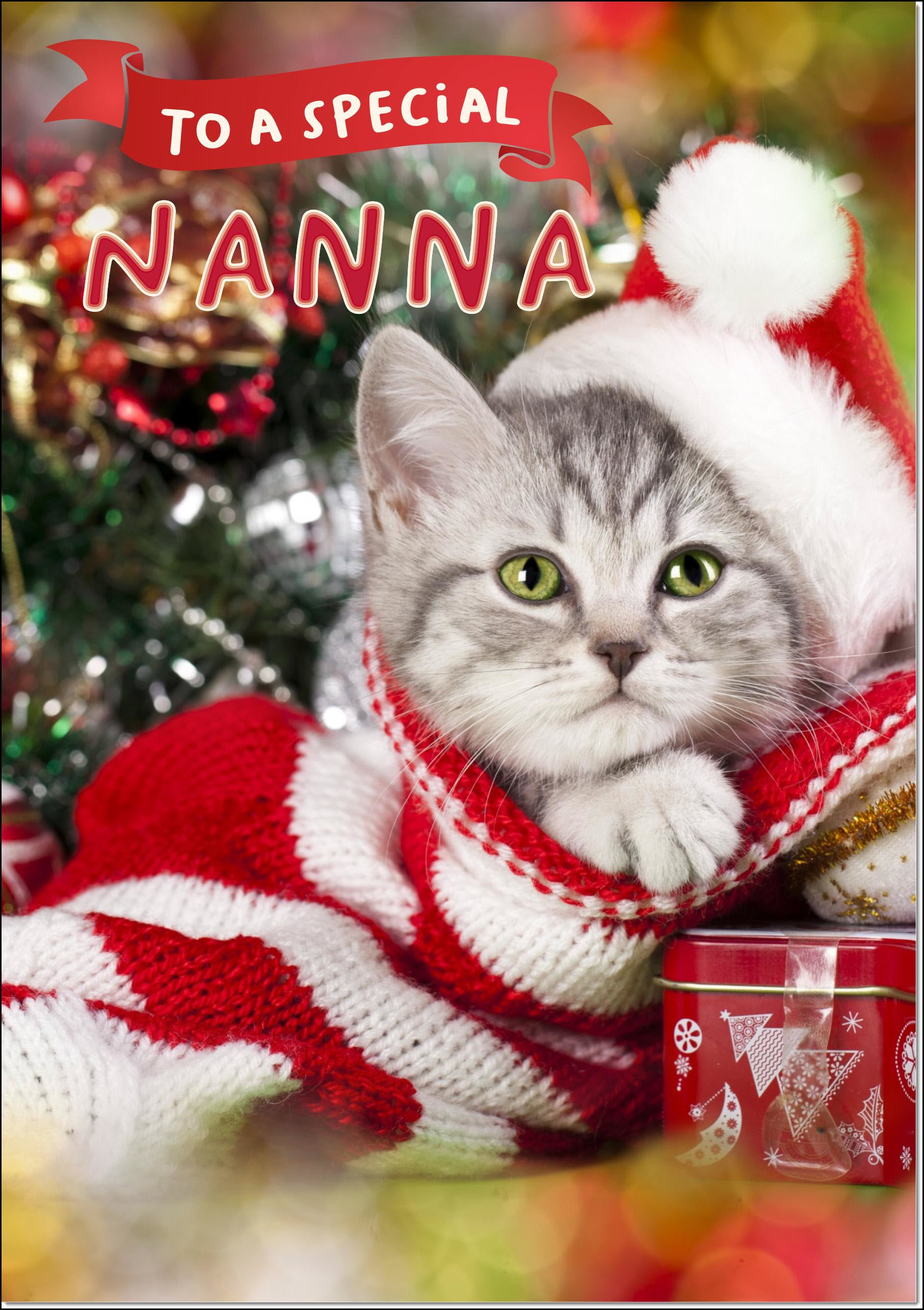 Nanna Christmas Card Cute Santa Paws Kitten Cat Pet Christmas Hat