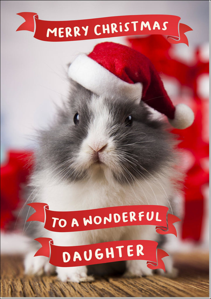 Daughter Christmas Card Cute Santa Paws Rabbit Pet Christmas Hat