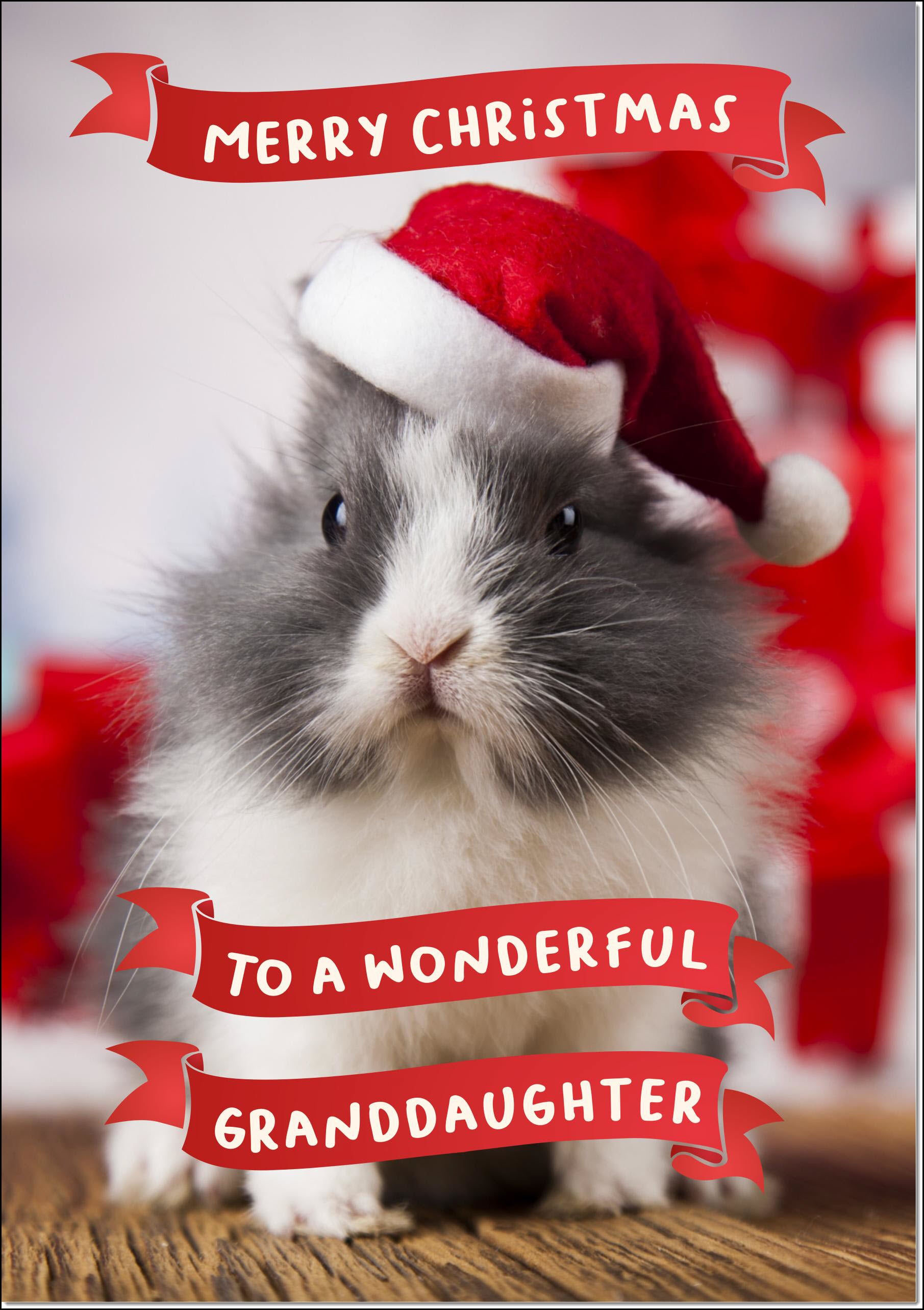 Granddaughter Christmas Card Cute Santa Paws Rabbit Pet Christmas Hat