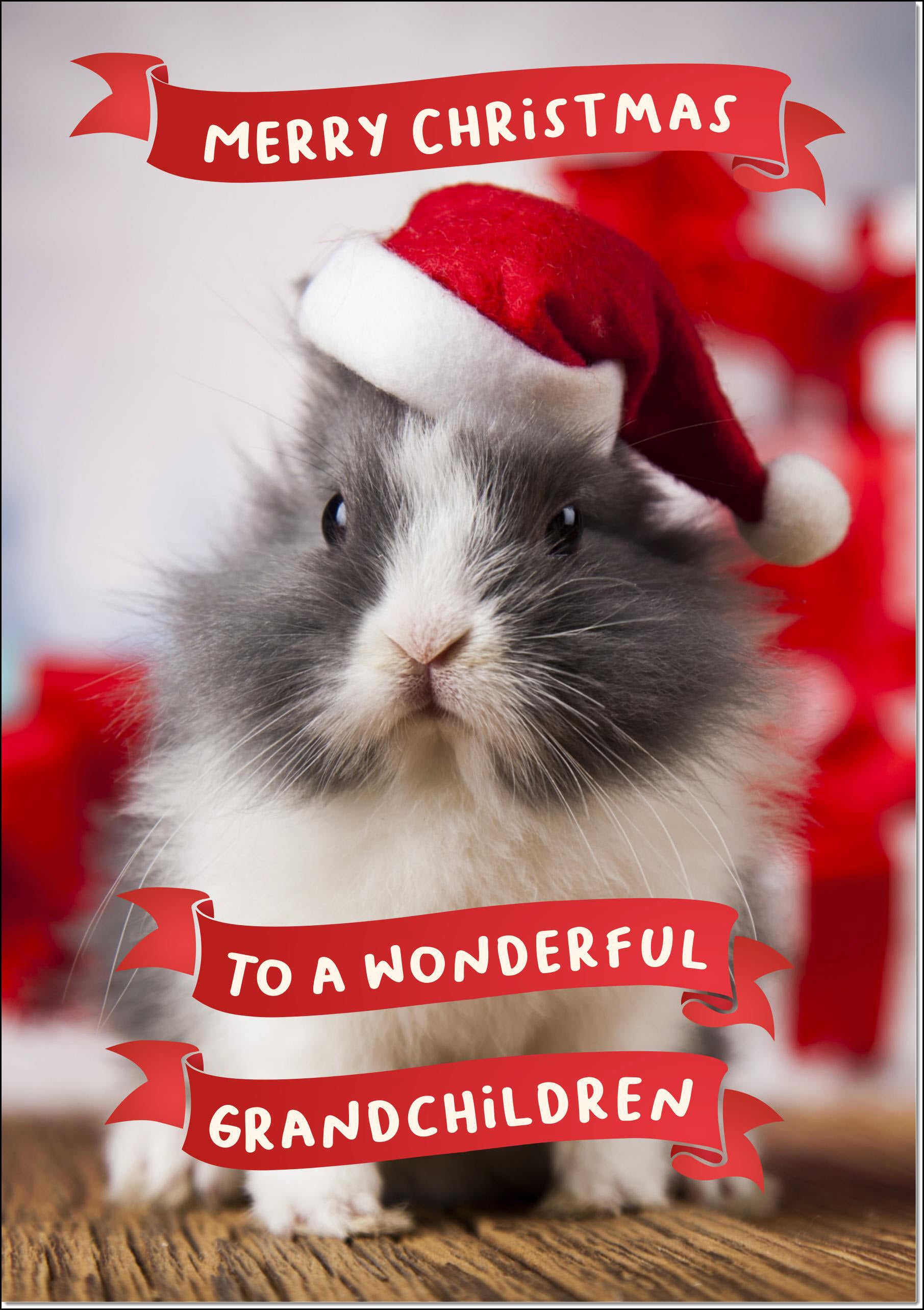 Grandchildren Christmas Card Cute Santa Paws Rabbit Pet Christmas Hat