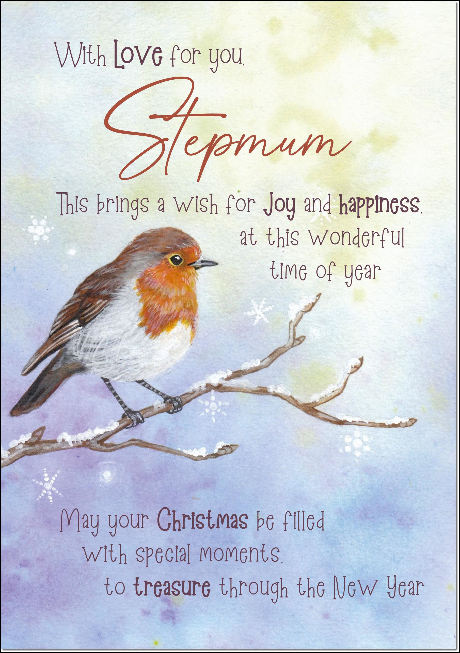 Stepmum Christmas Card Watercolour Robin In The Frost