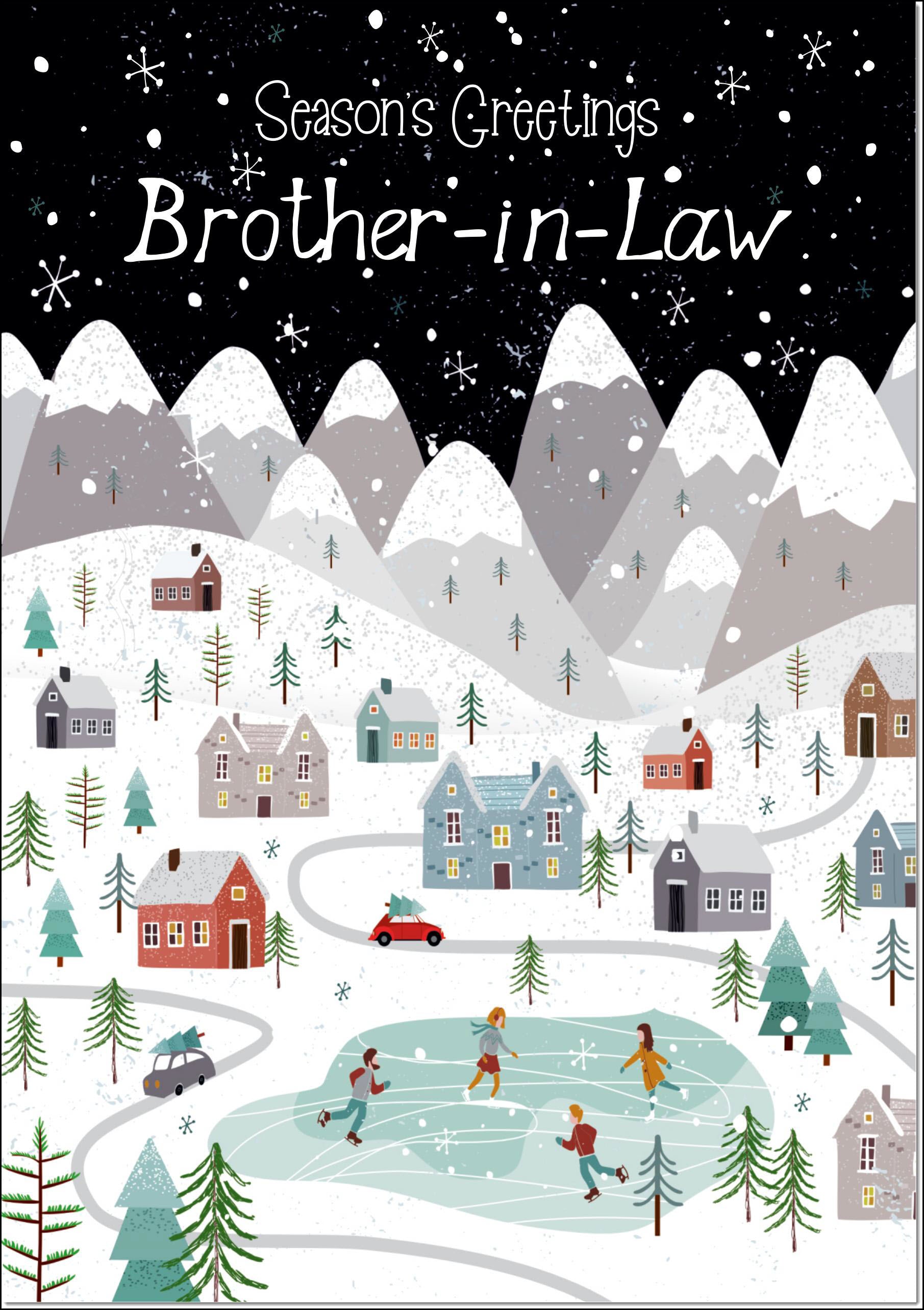 Brother-in-Law Christmas Card Mountain Scene In Snowy Village