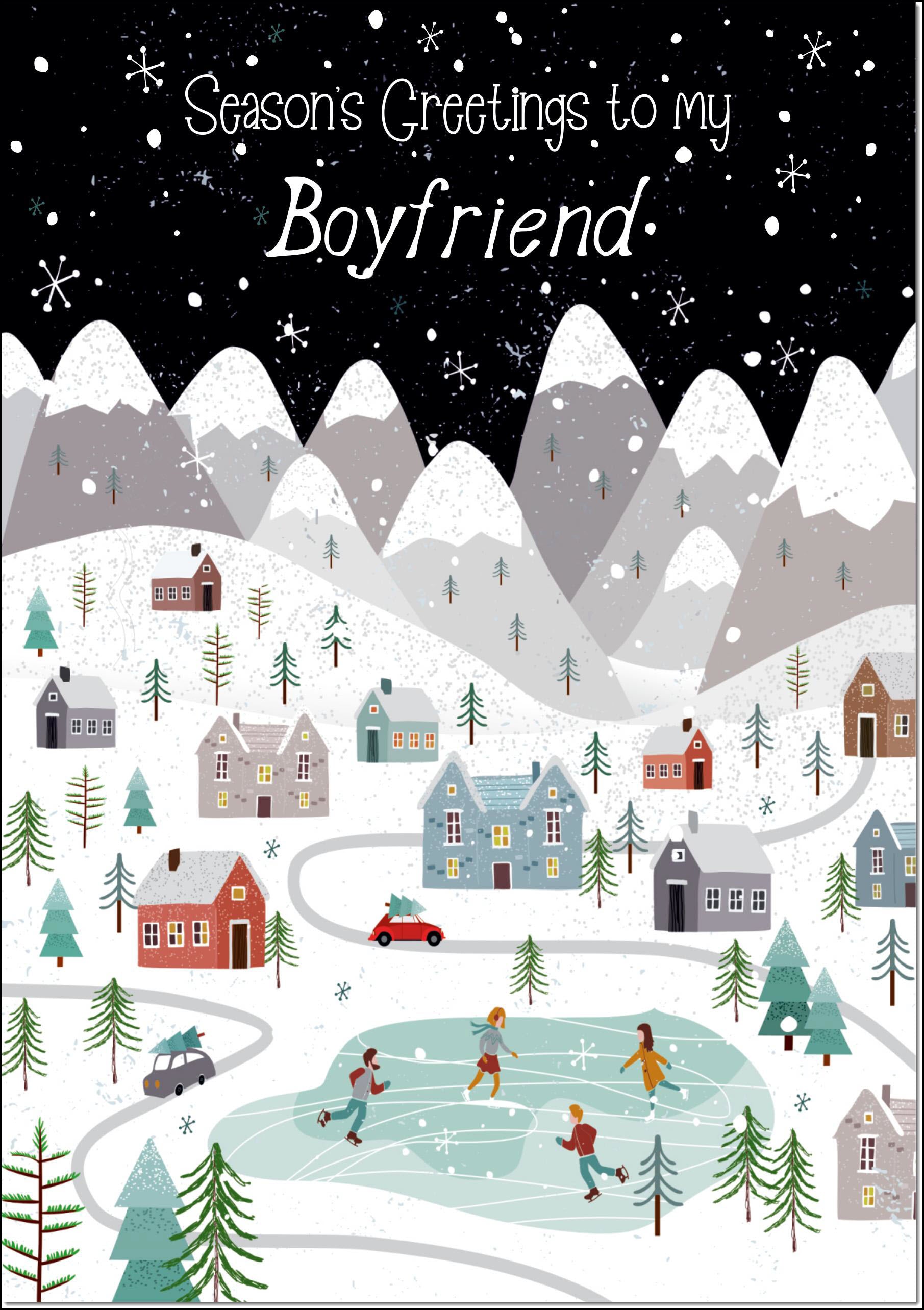 Boyfriend Christmas Card Mountain Scene In Snowy Village