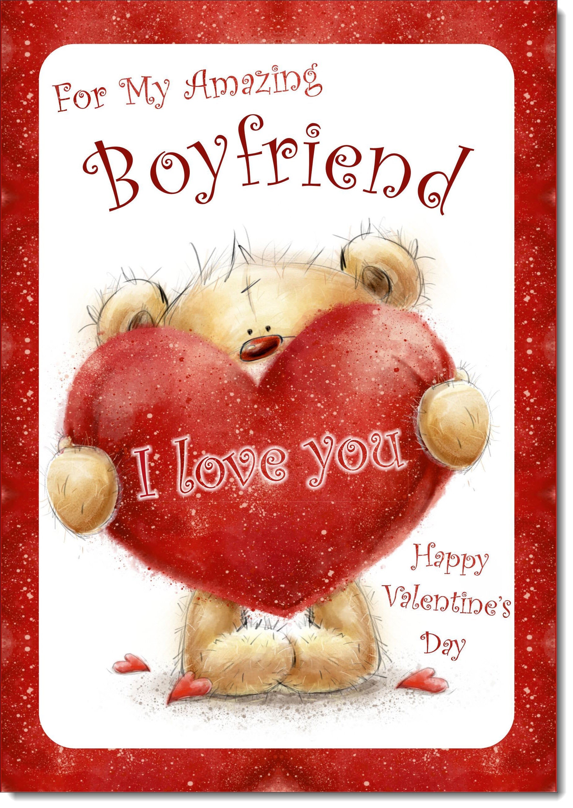 Boyfriend Valentines Card Teddy Holding I Love You Heart