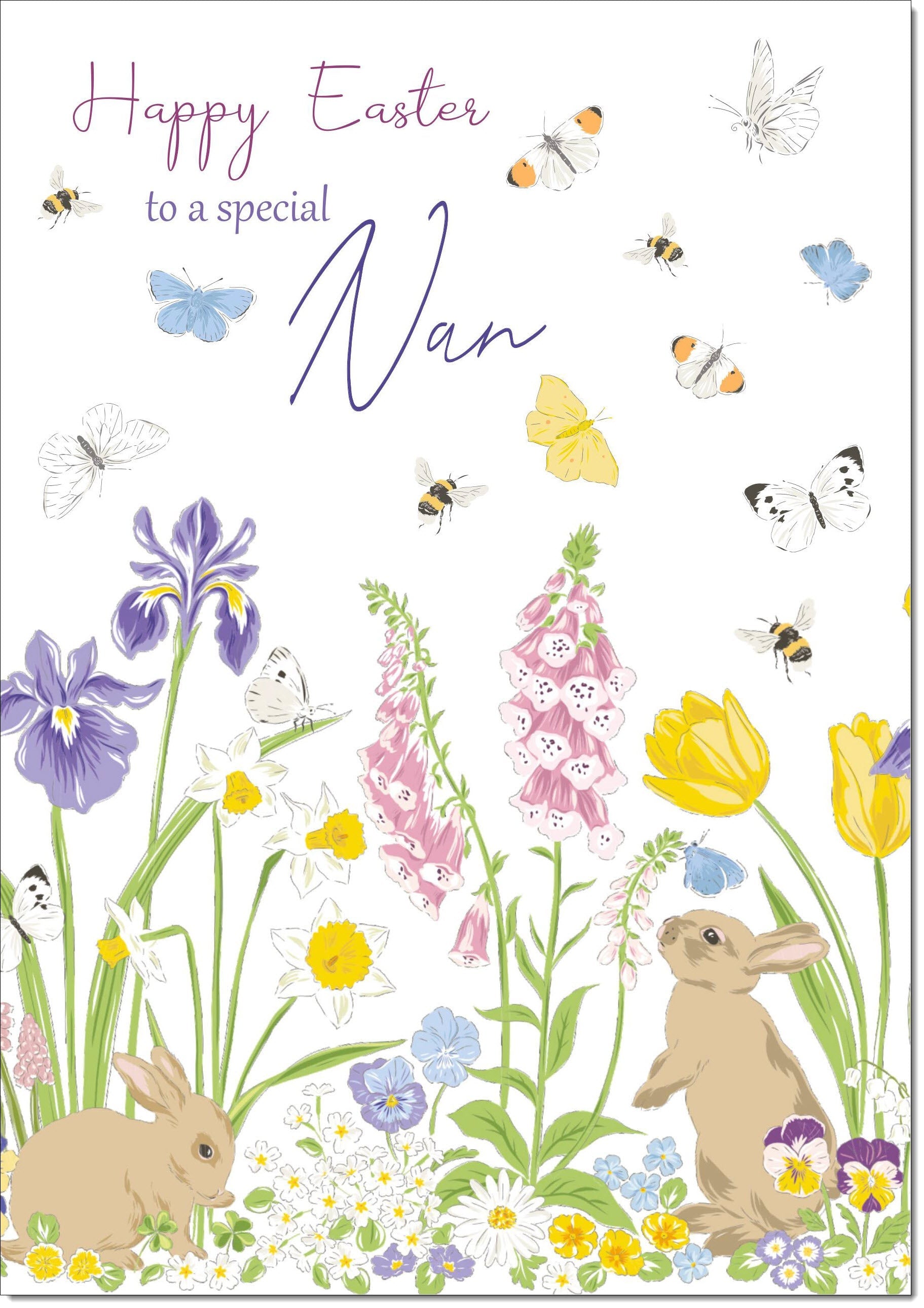 Nan Easter Card Spring Flowers with Bunnies