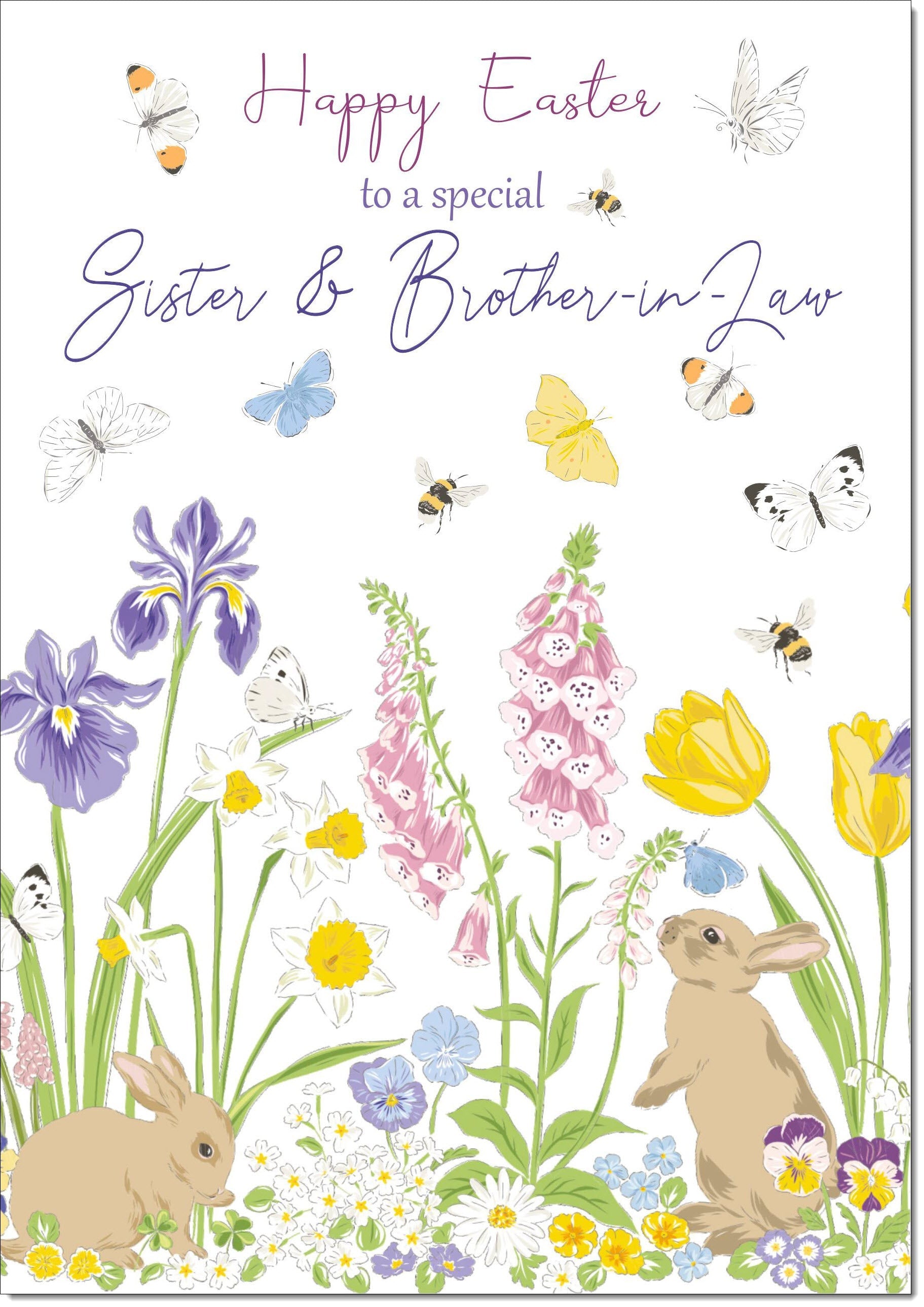 Sister & Brother-in-Law Easter Card Spring Flowers with Bunnies