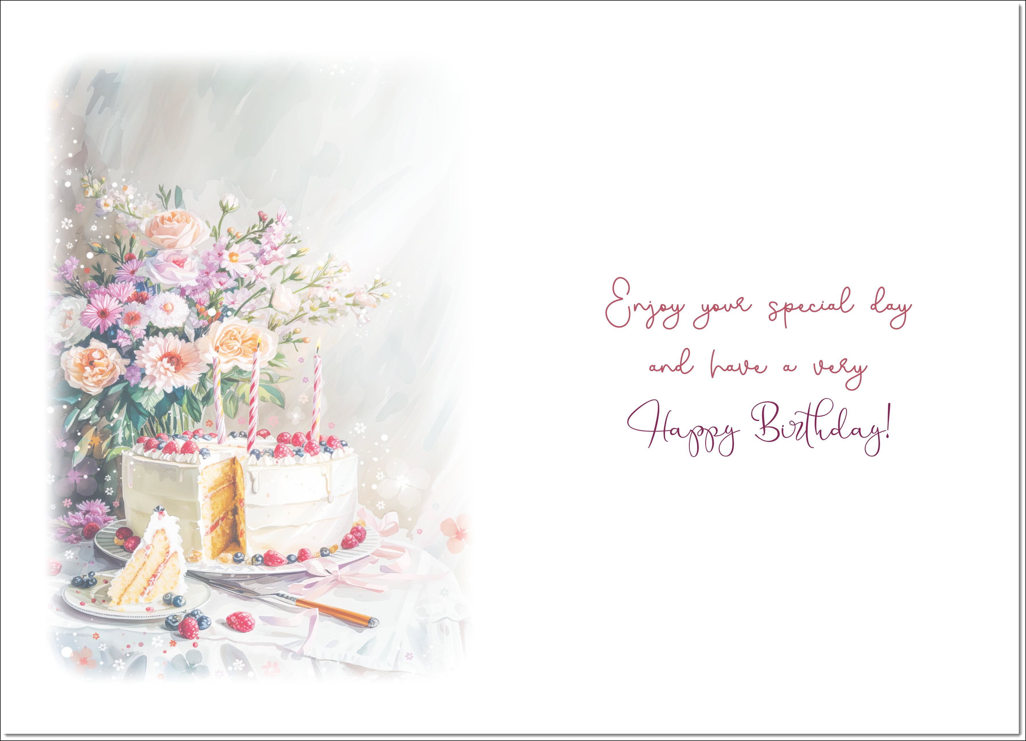 Daughter-in-Law Birthday Card Birthday Cake and Flowers