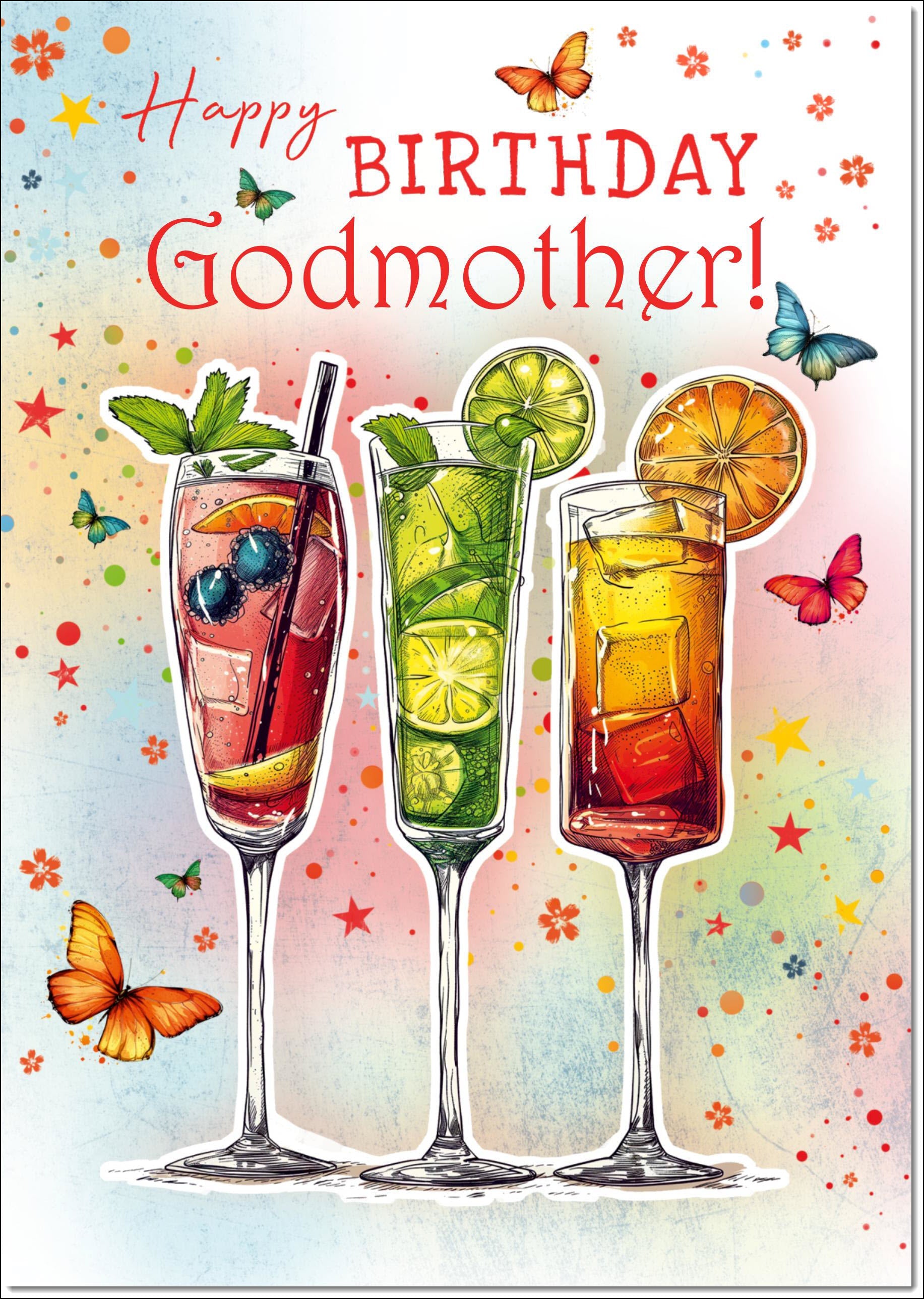 Godmother Birthday Card Cocktails and Butterflies