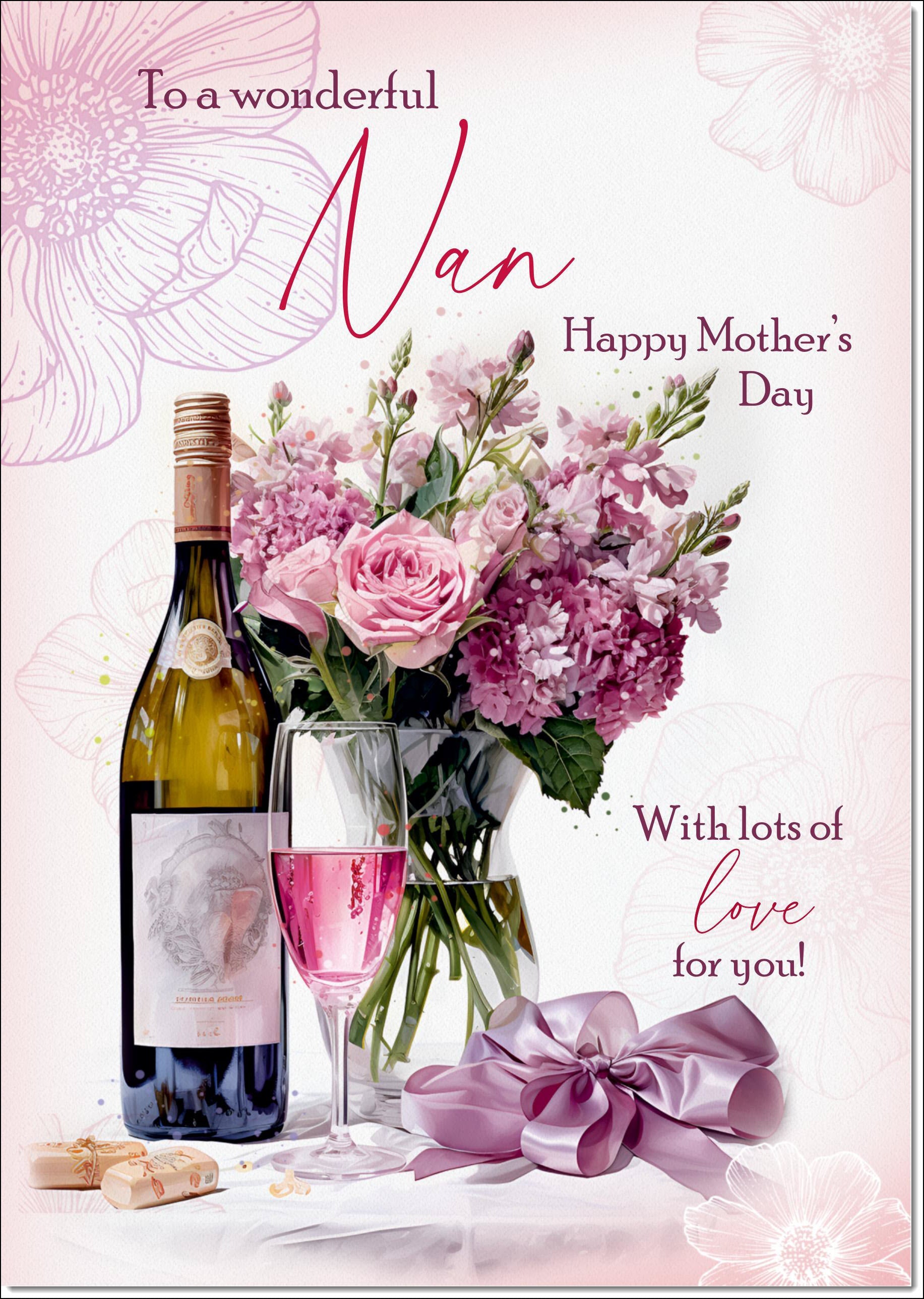 Nan Mothers Day Card Roses and Red Wine