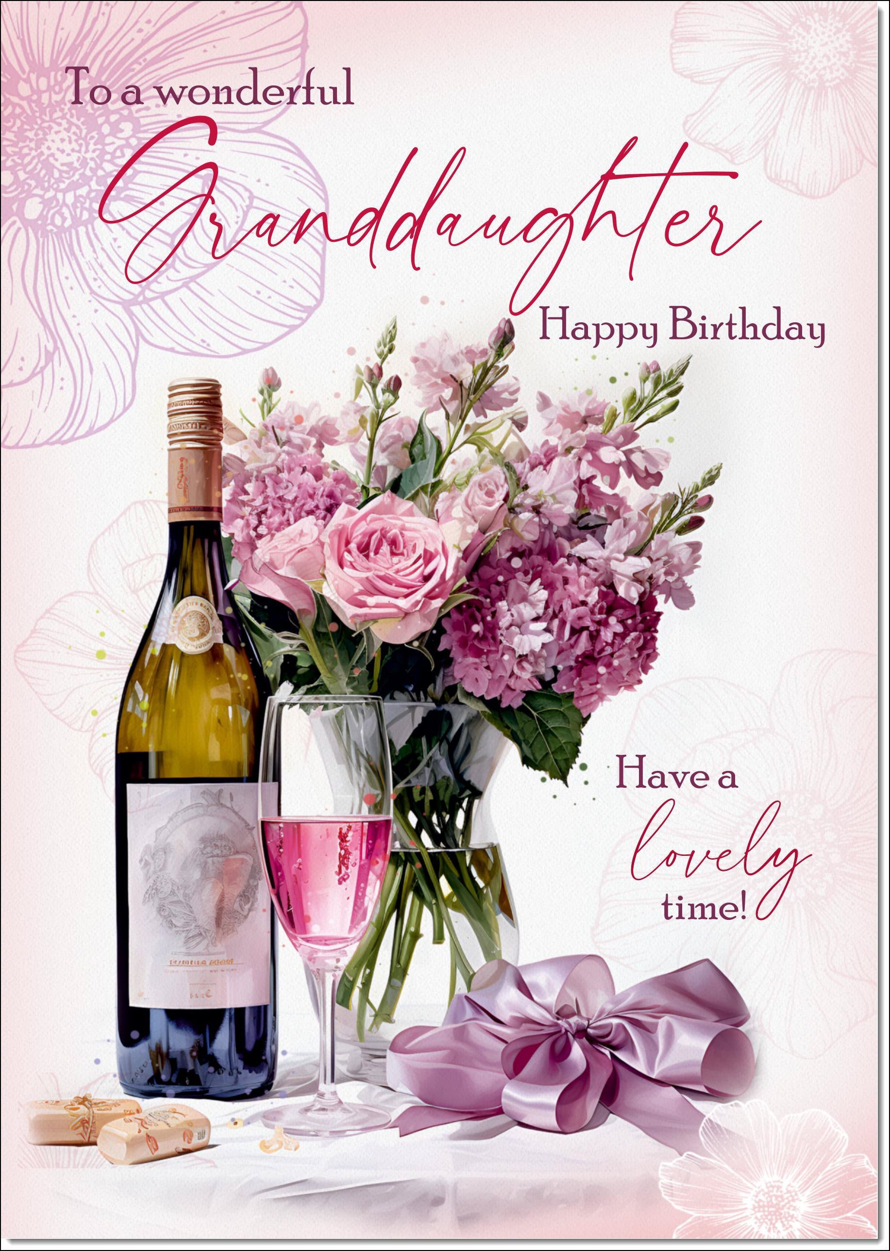 Granddaughter Birthday Card Roses and Red Wine