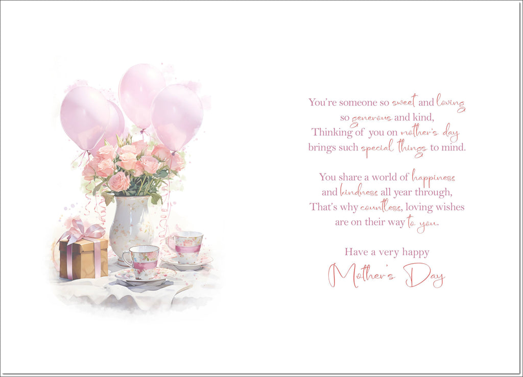Like A Mum Mothers Day Card Tea Party and Balloons