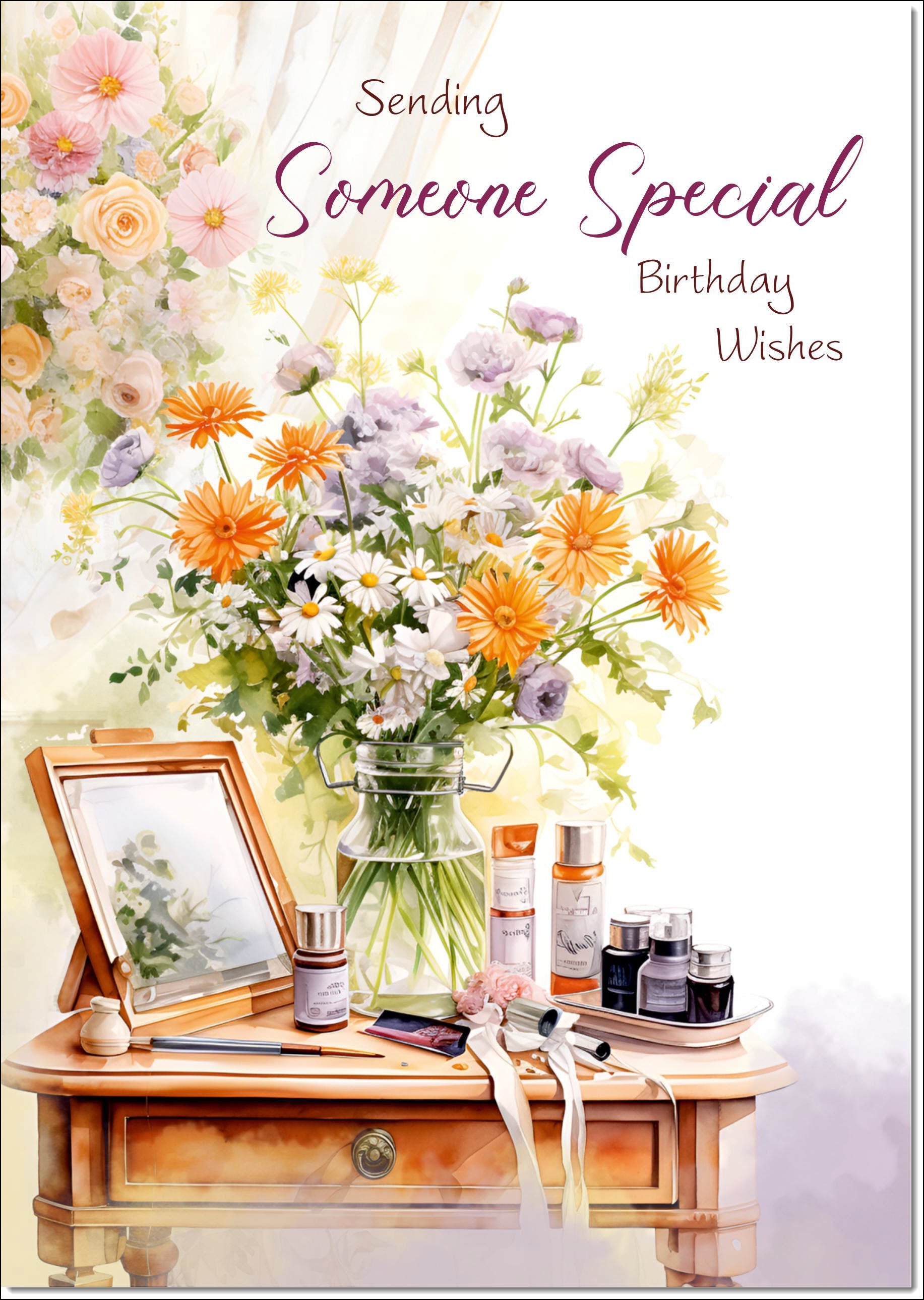 Someone Special Birthday Card for Her Dressing Table Bouquet