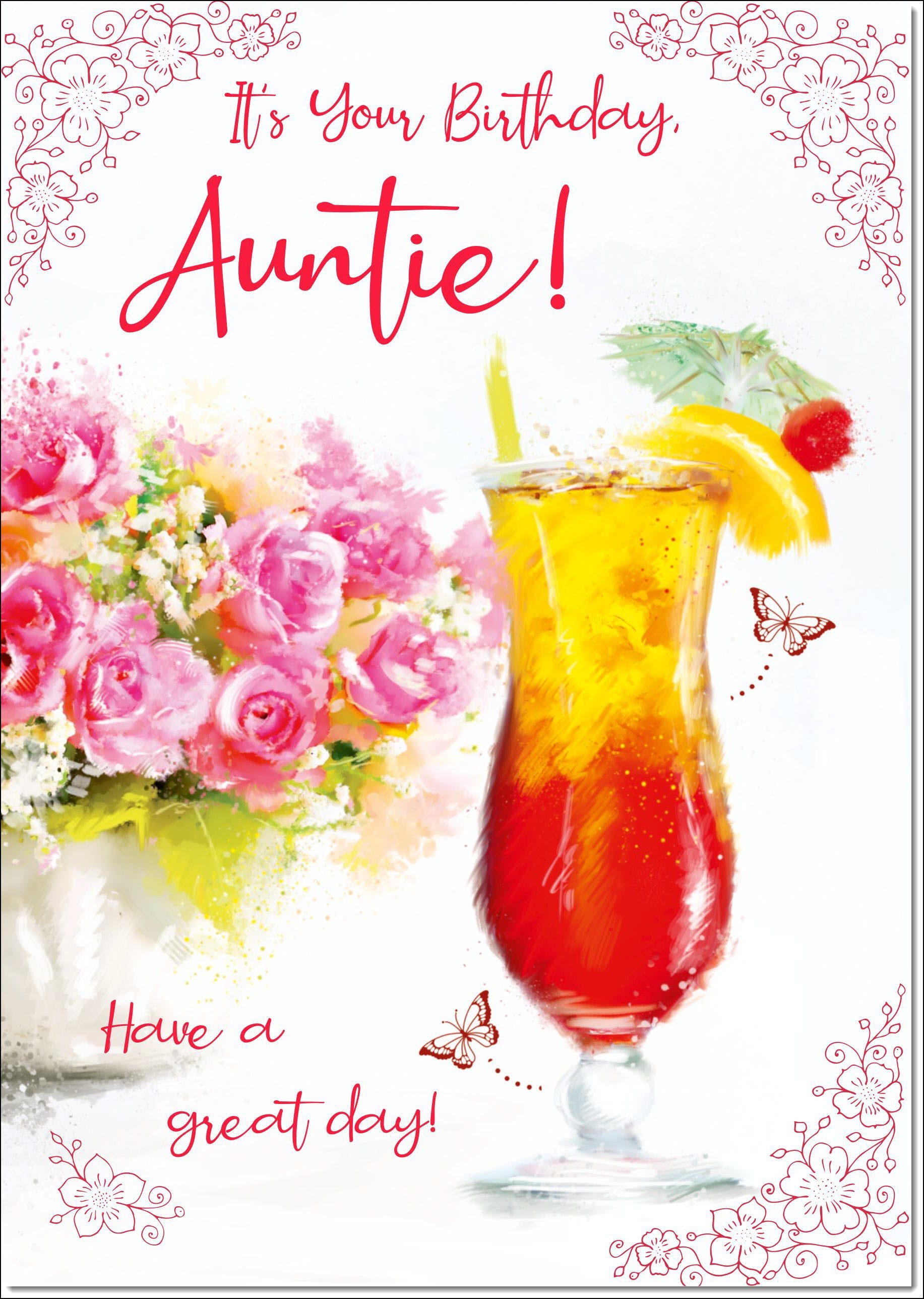 Auntie Birthday Card Floral Cocktail