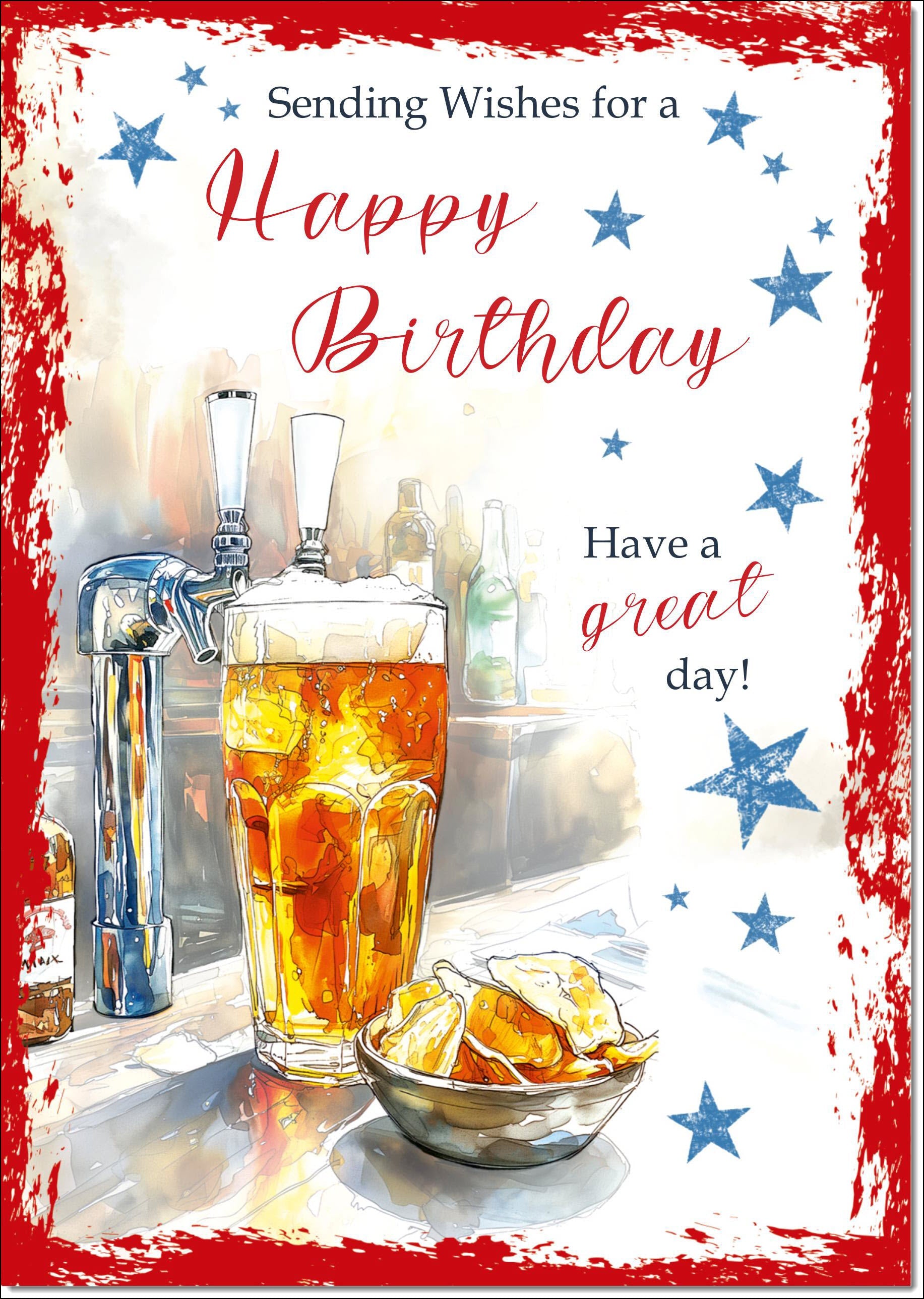 Birthday Card for Him Traditional Beer and Crisps