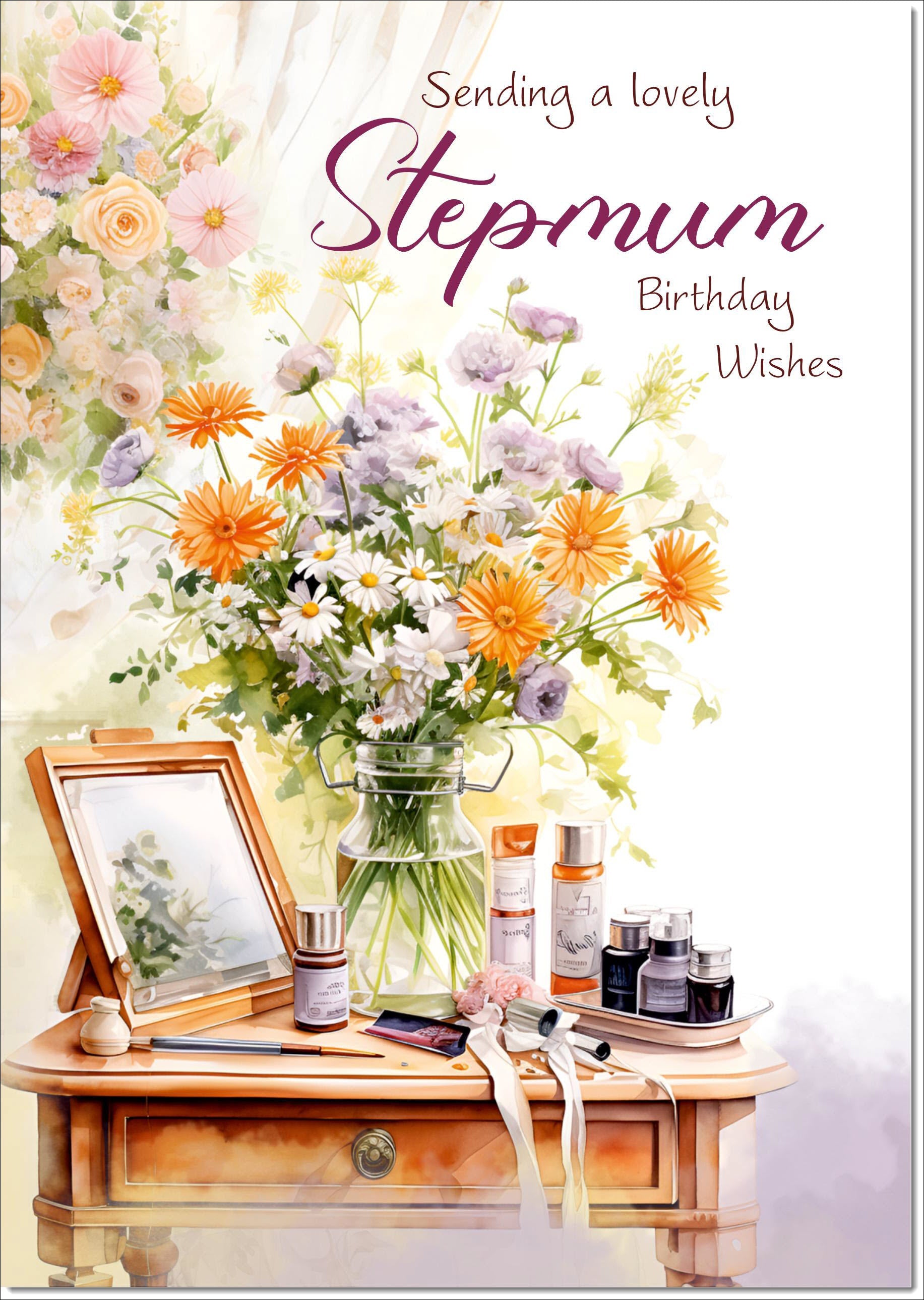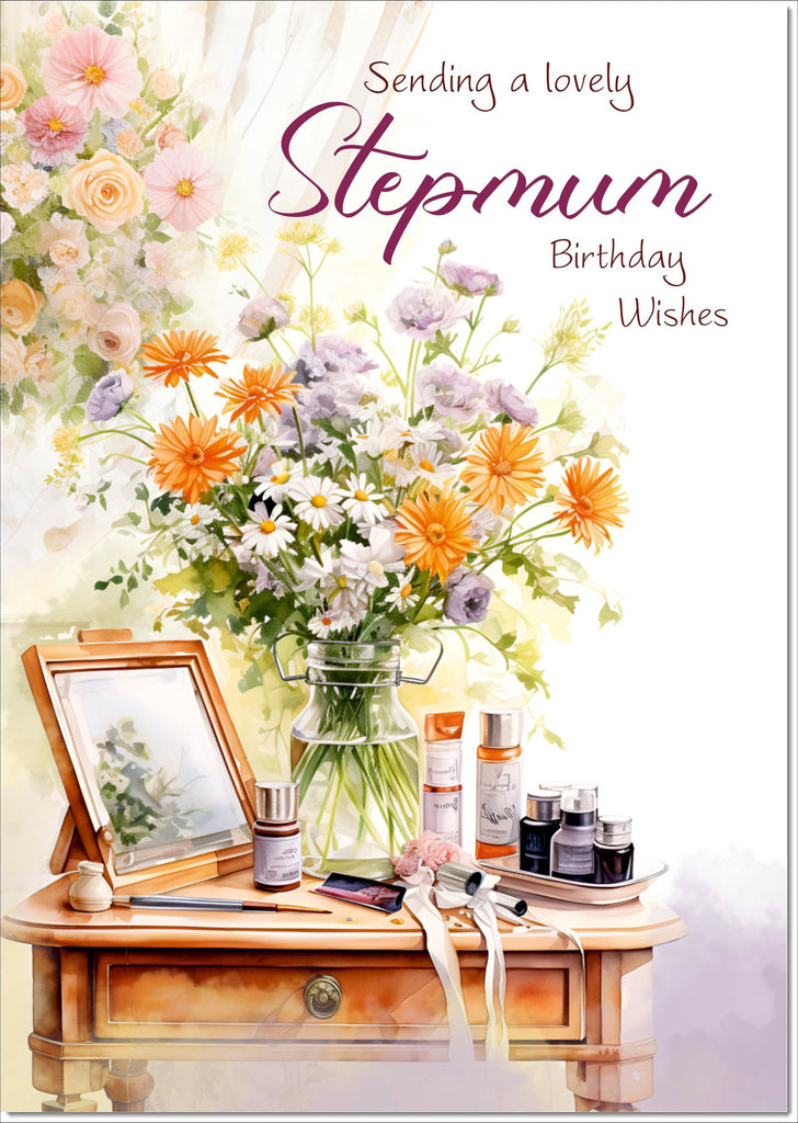 Stepmum Birthday Card Dressing Table Bouquet