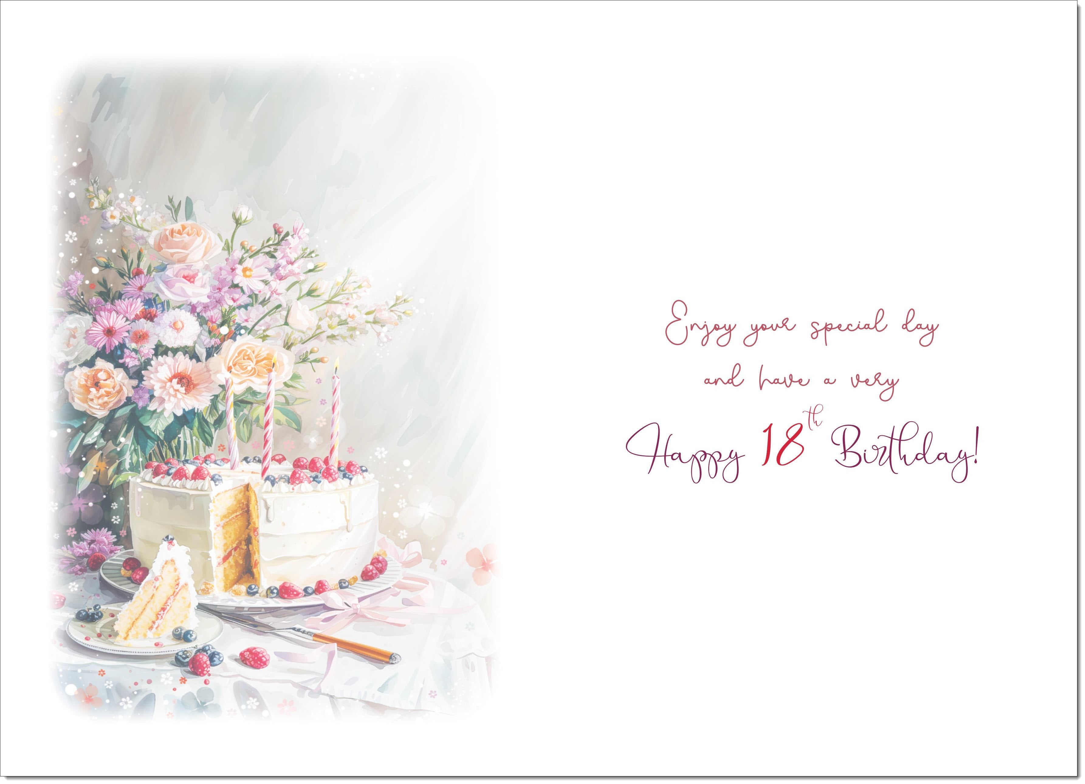 Niece 18th Birthday Card Age 18 Birthday Cake and Flowers