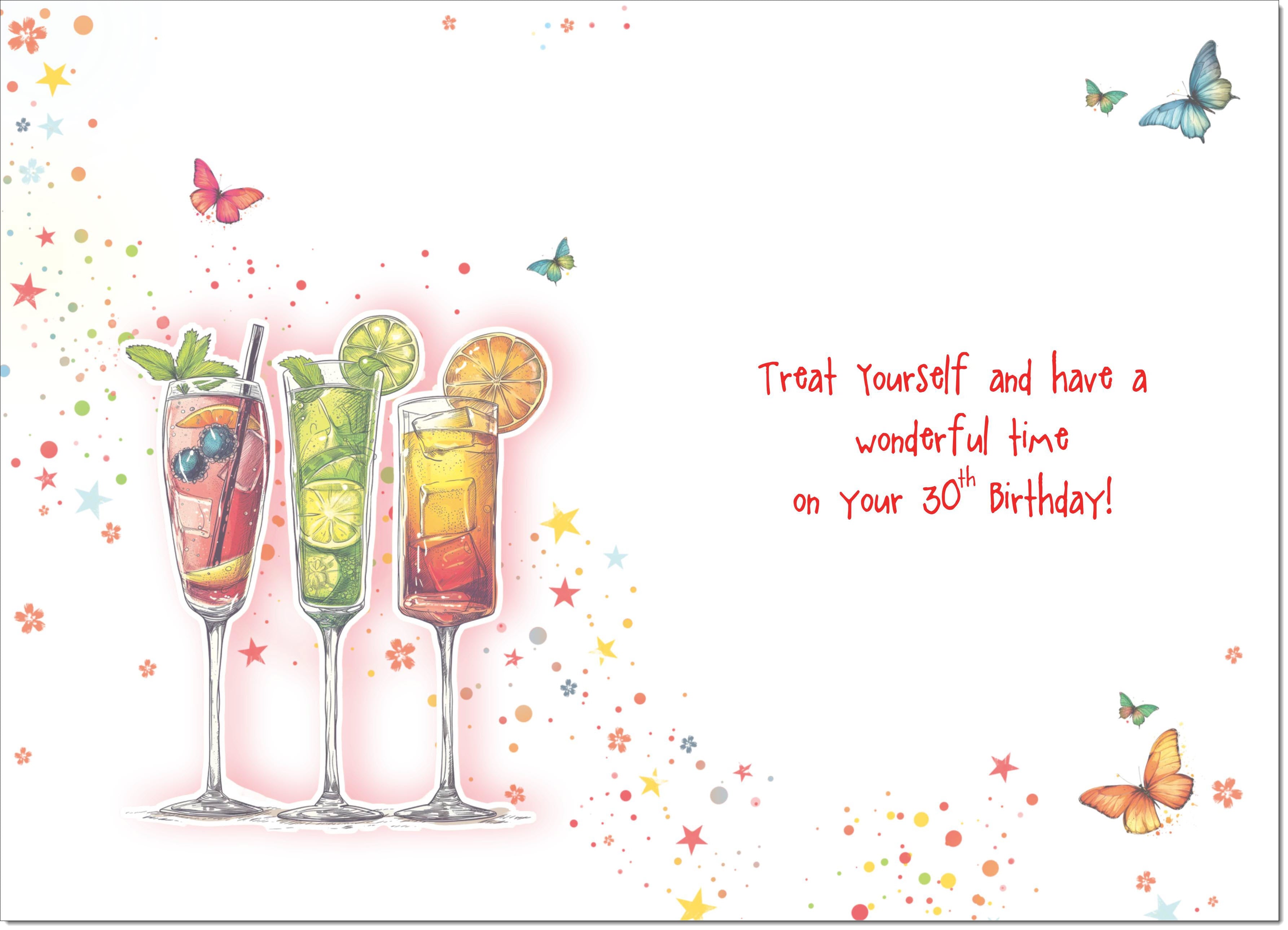 Niece 30th Birthday Card Age 30 Cocktails and Butterflies