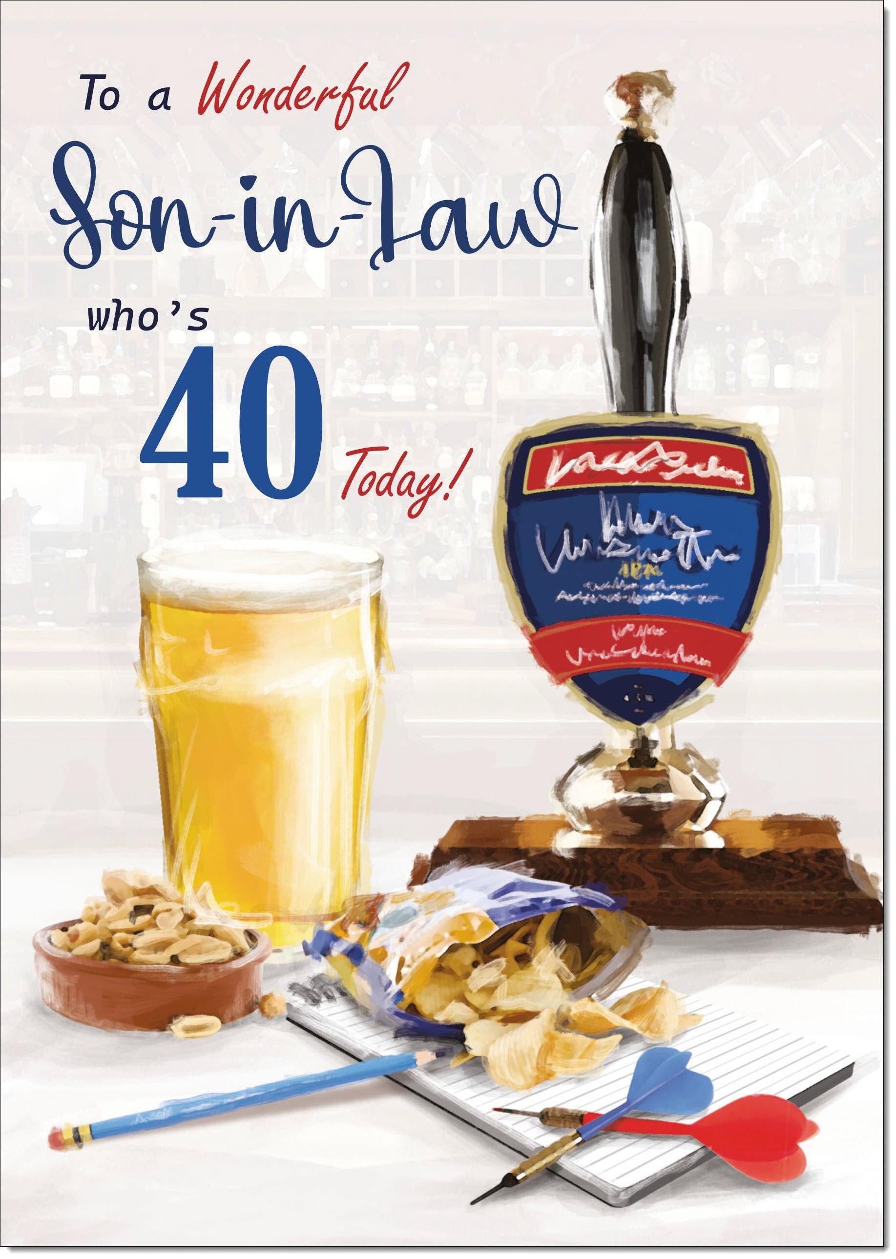 Son-in-Law 40th Birthday Card Age 40 Draft Beer