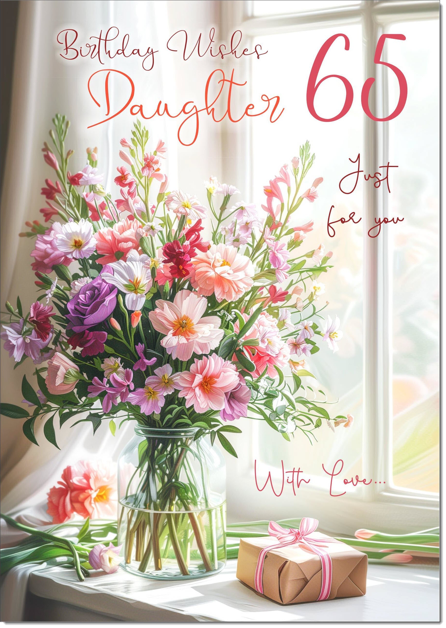 Daughter 65th Birthday Card Age 65 Flower Bouquet and Present