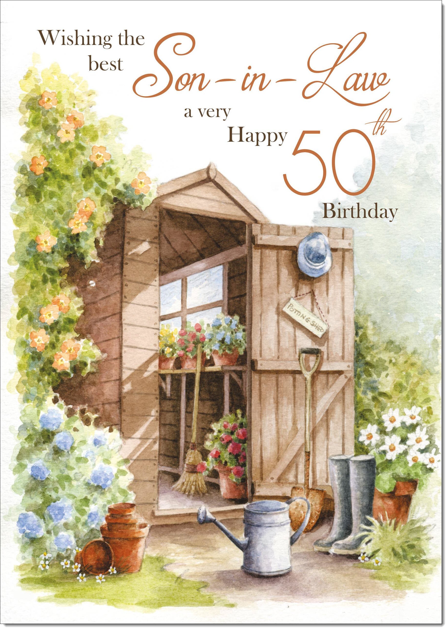 Son-in-Law 50th Birthday Card Age 50 Garden Shed