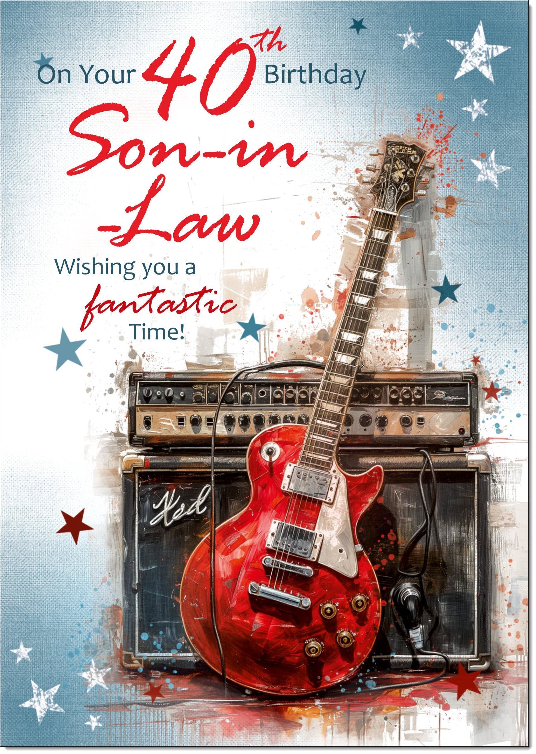 Son-in-Law 40th Birthday Card Age 40 Guitar