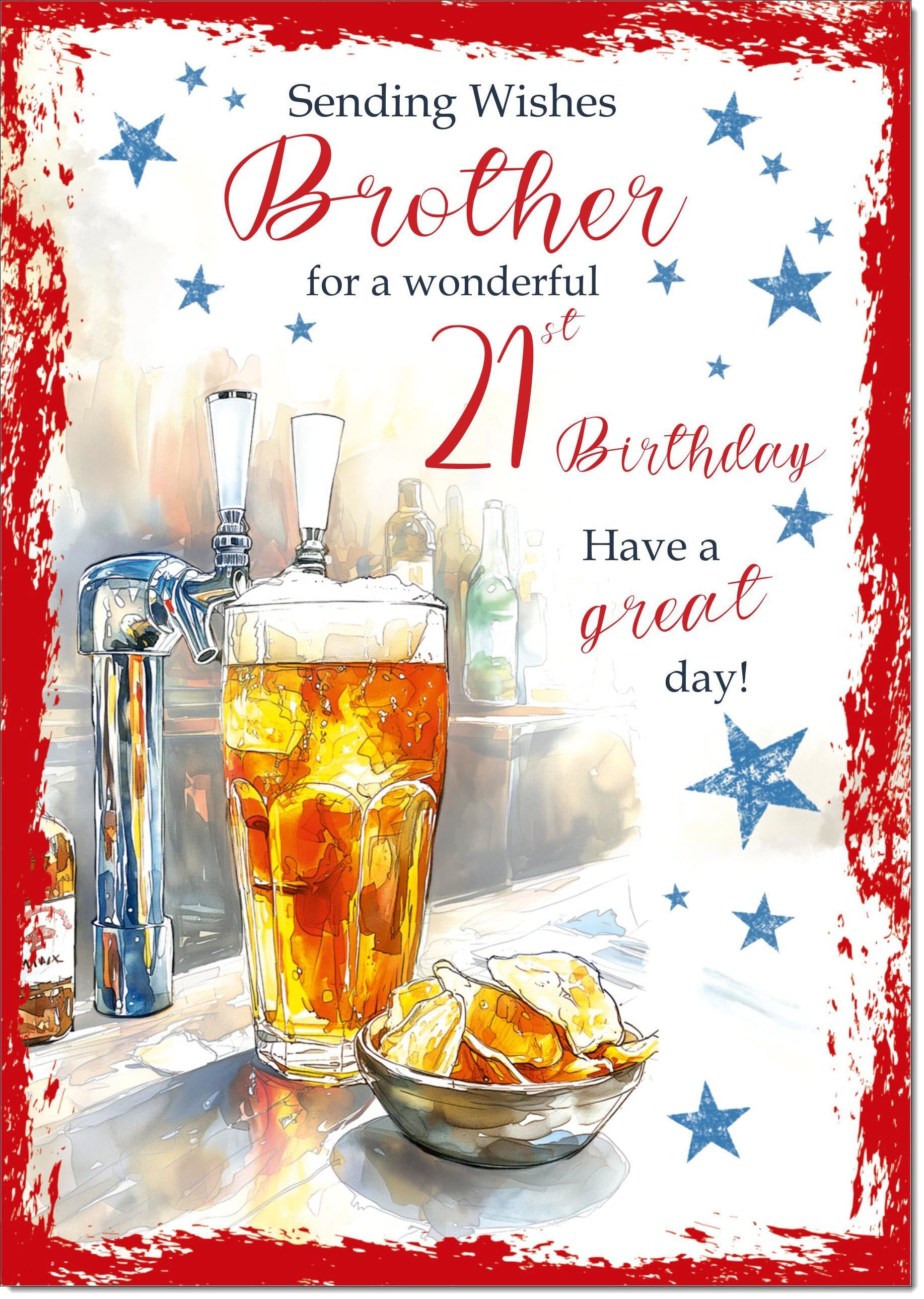 Brother 21st Birthday Card Age 21 Beer and Crisps