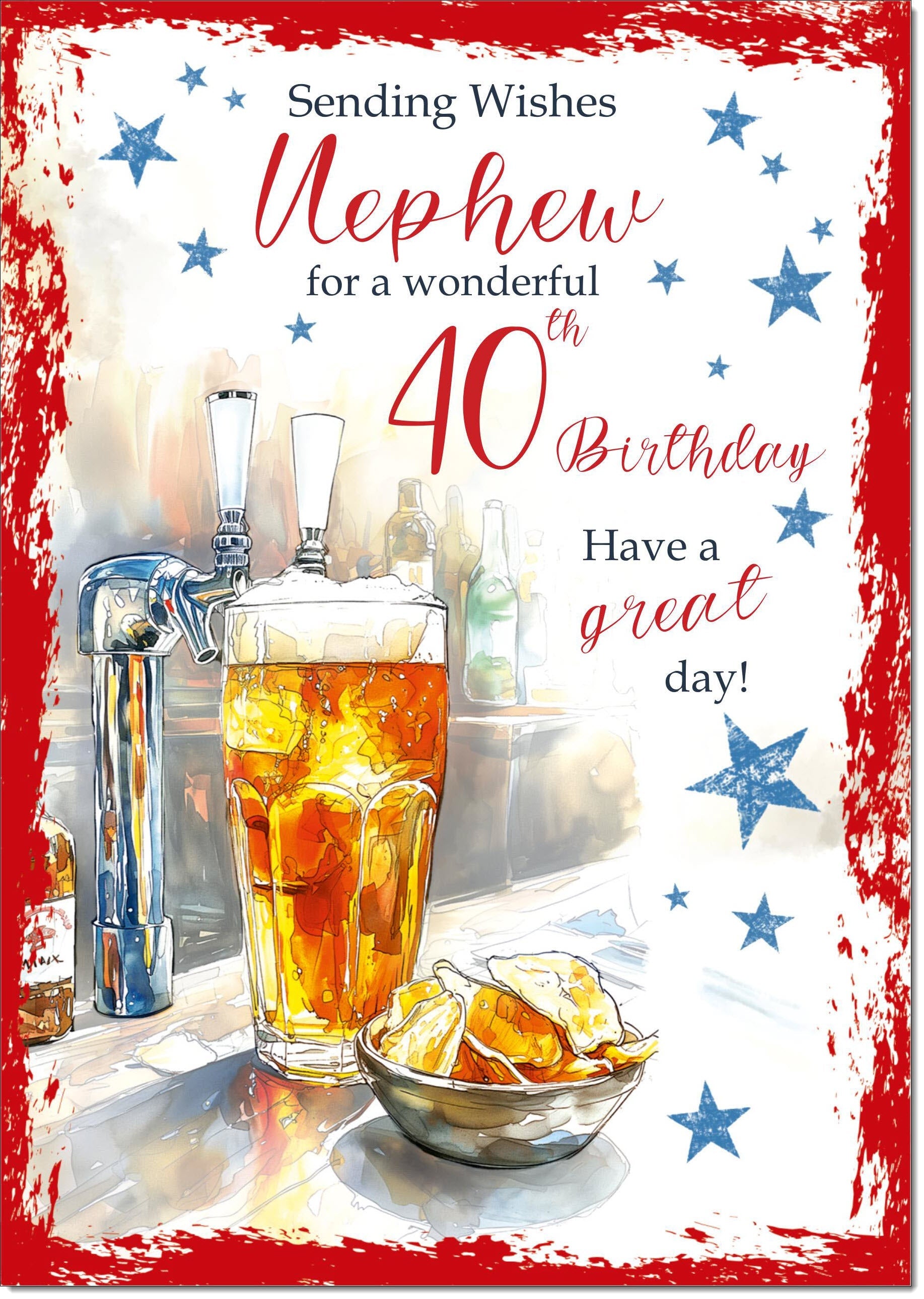 Nephew 40th Birthday Card Age 40 Beer and Crisps