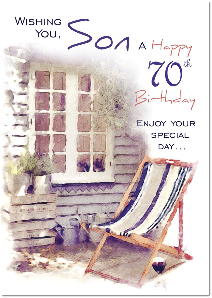Son 70th Birthday Card Age 70 Relaxing Deck Chair