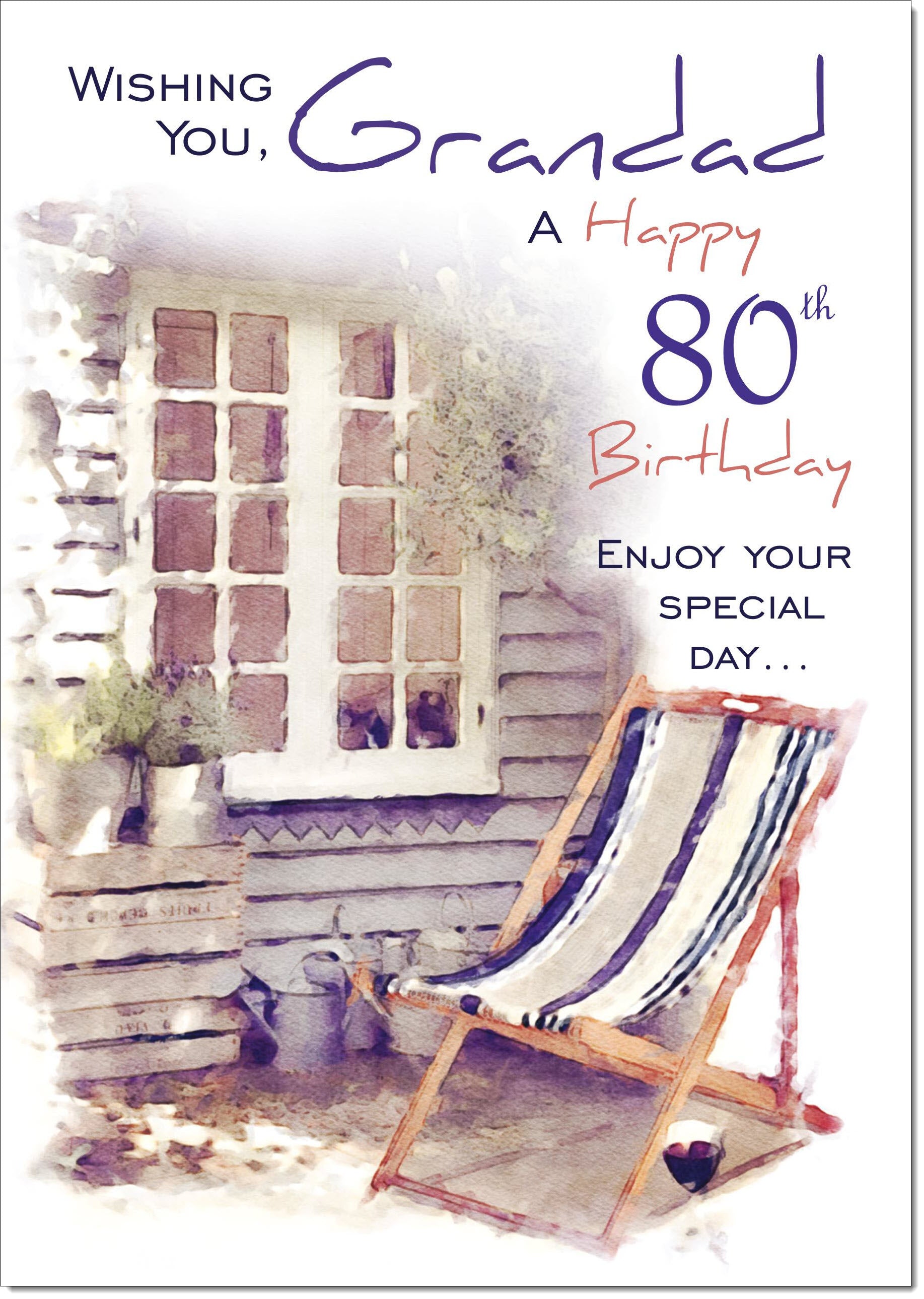 Grandad 80th Birthday Card Age 80 Relaxing Deck Chair