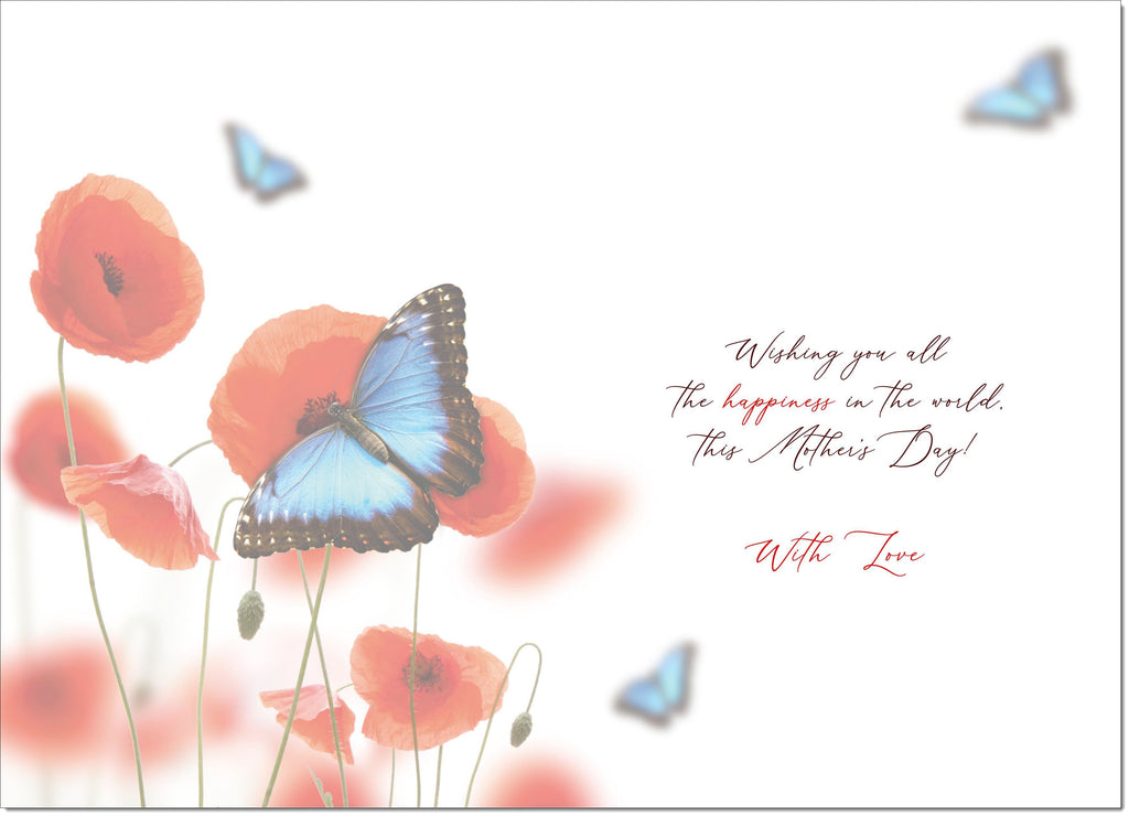 Mum Mothers Day Card Poppies and Blue Butterflies