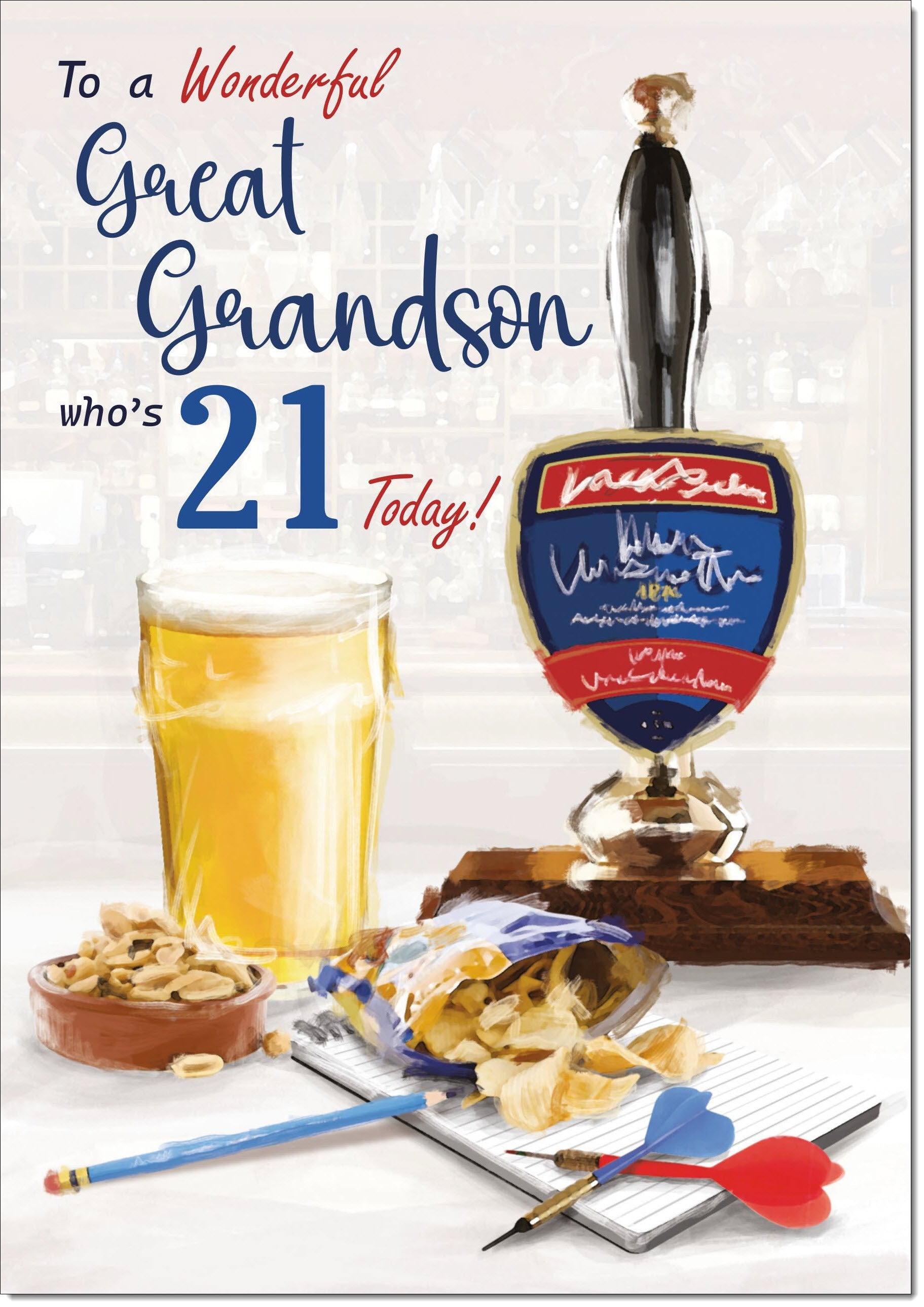 Great Grandson 21st Birthday Card Age 21 Draft Beer
