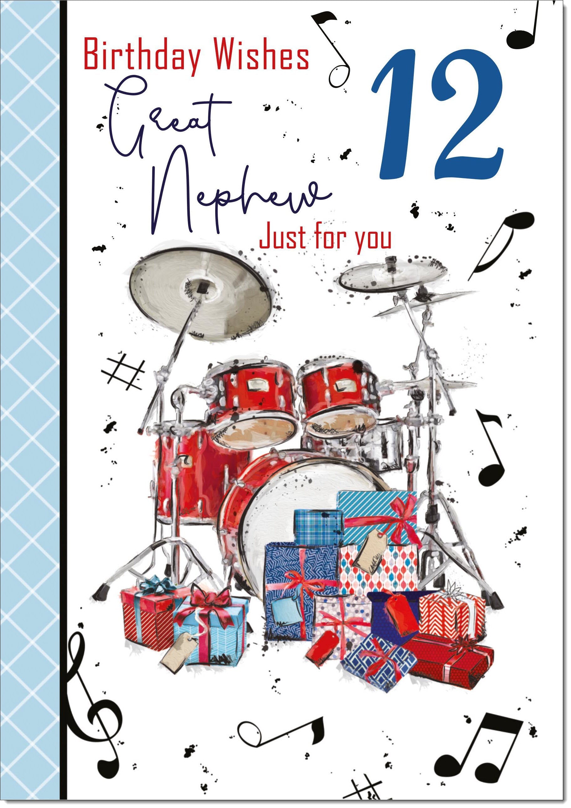 Great Nephew 12th Birthday Card Age 12 Drumkit