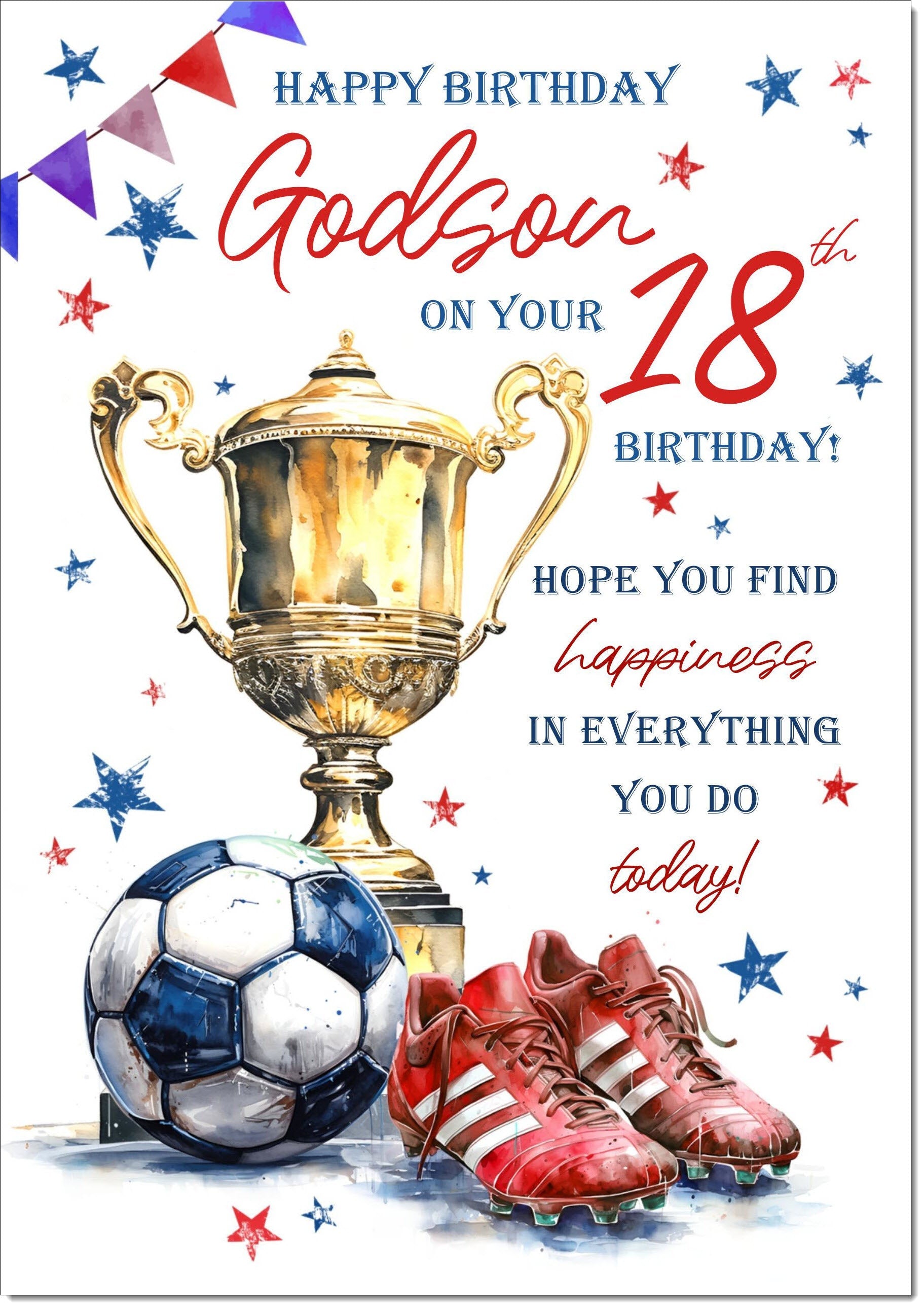 Godson 18th Birthday Card Age 18 Footballer's Trophy