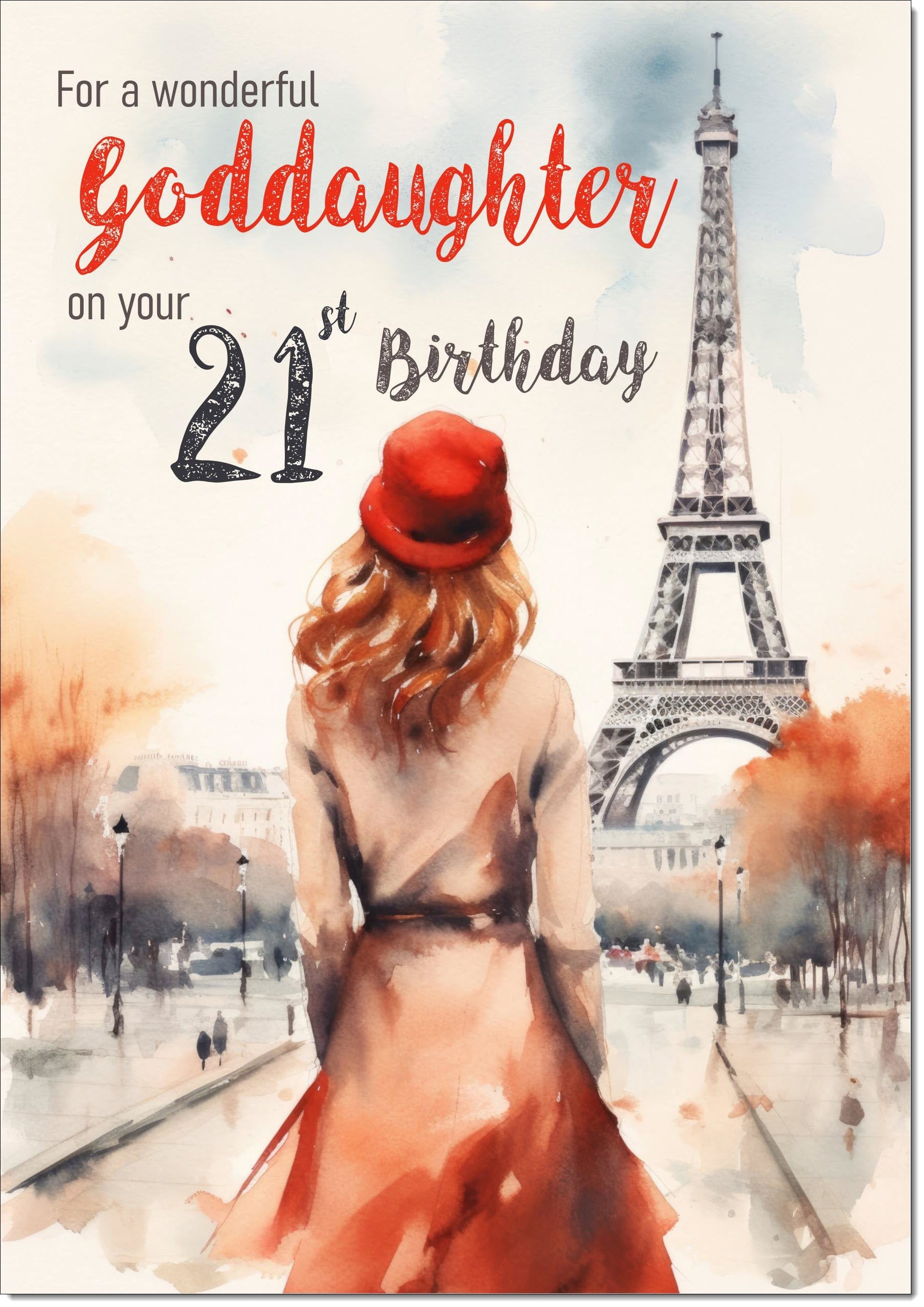 Goddaughter 21st Birthday Card Age 21 Paris, Eiffel Tower