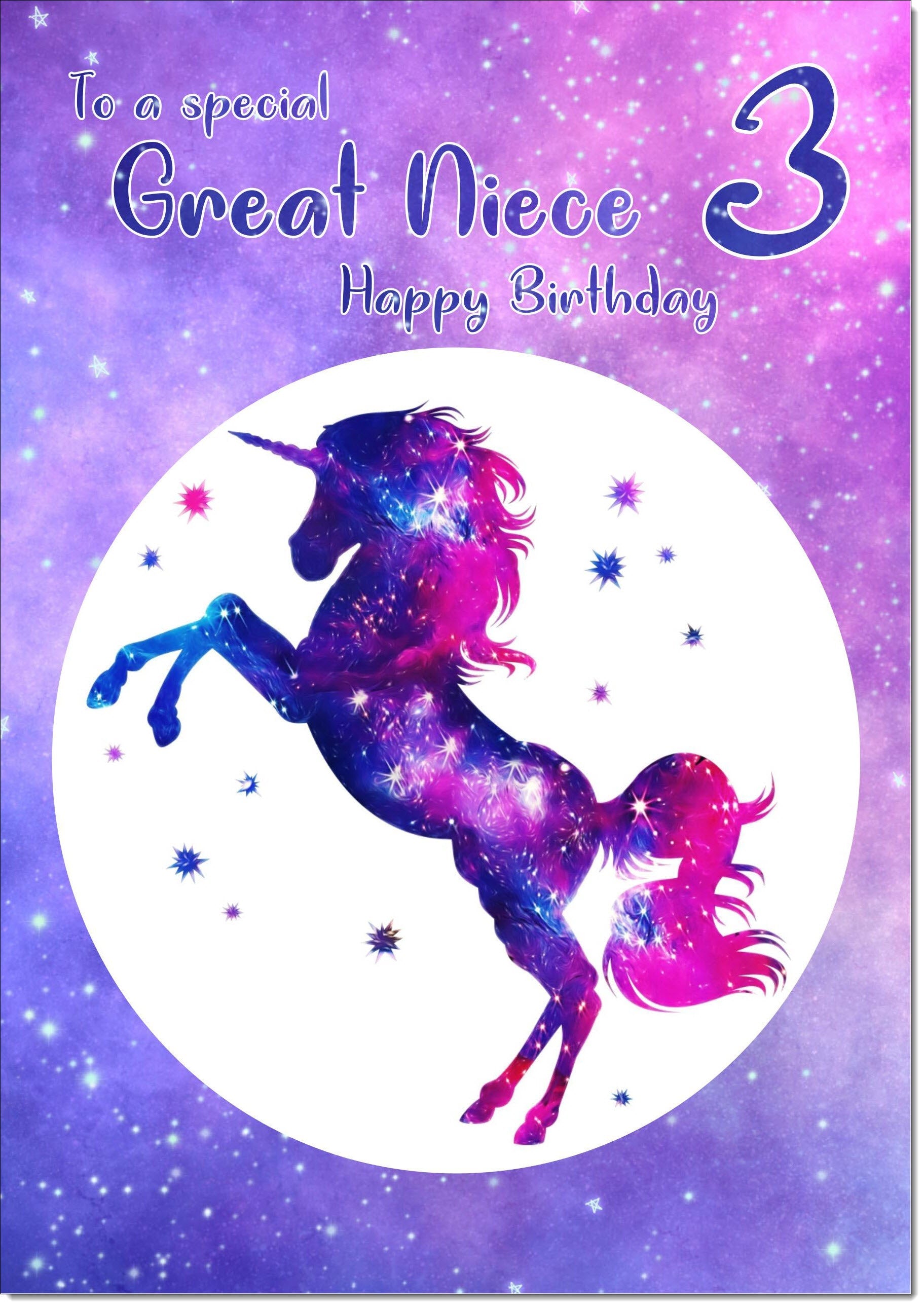 Great Niece 3rd Birthday Card Age 3 Stardust Unicorn