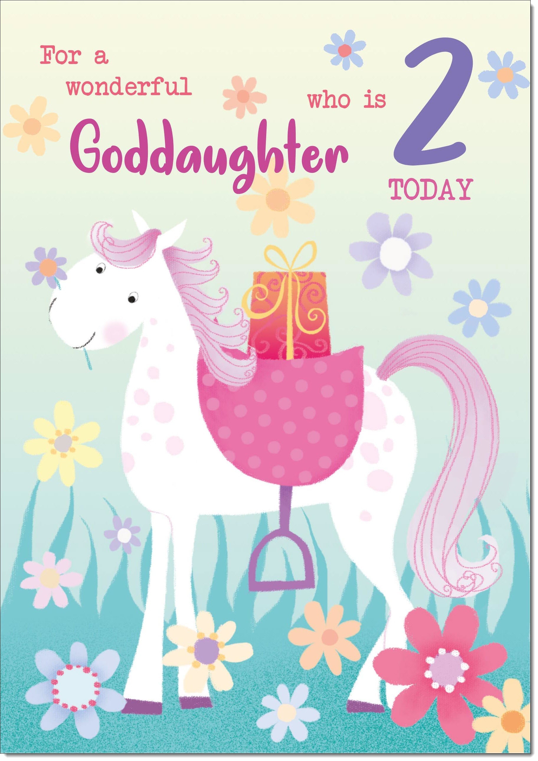 Goddaughter 2nd Birthday Card Age 2 Colouring Unicorn Horse